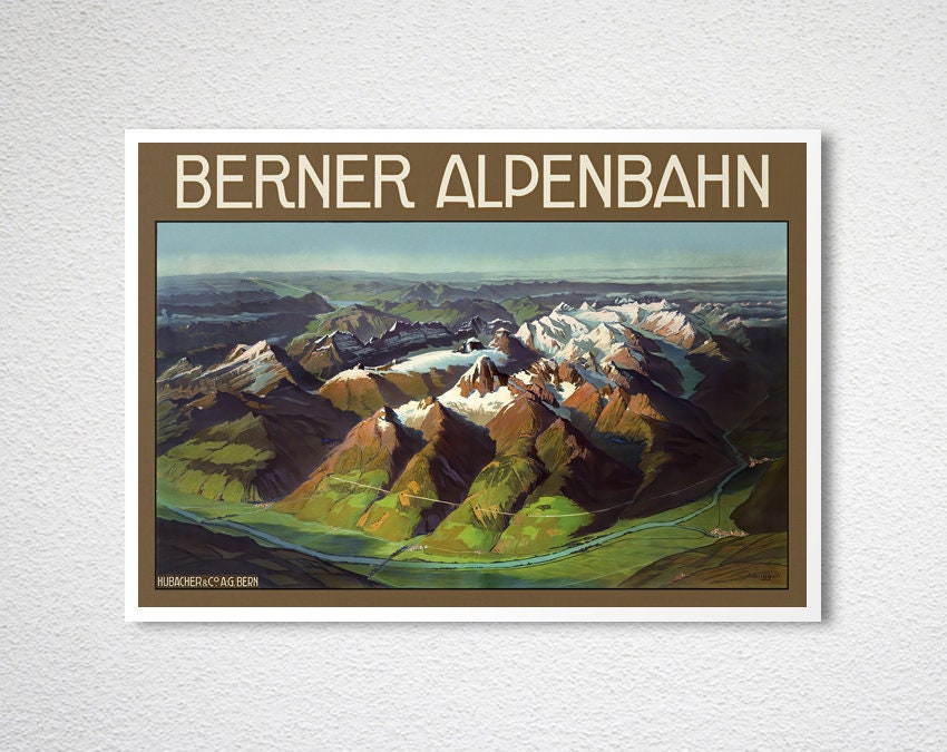 Berner Alpen Bahn Vintage Travel Poster: Swiss Alps Print