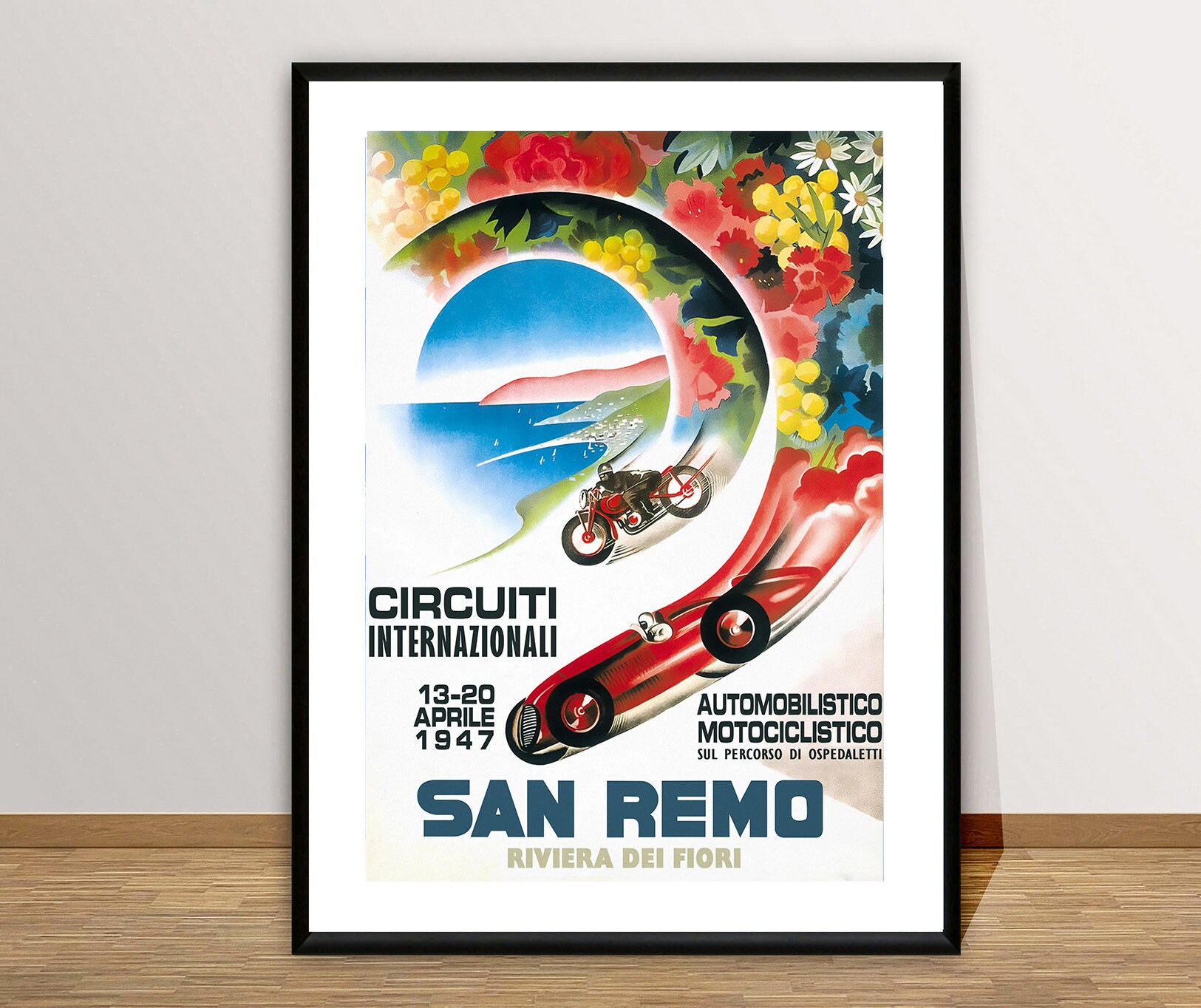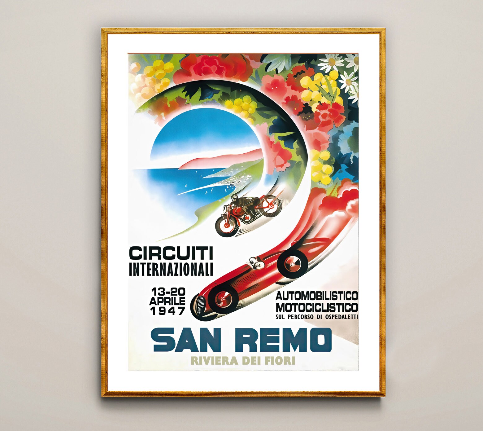 Vintage San Remo Grand Prix Advertisement (1947) Art Print - Reproduction of a Vintage Artwork, Decorative Purposes Wall Decor