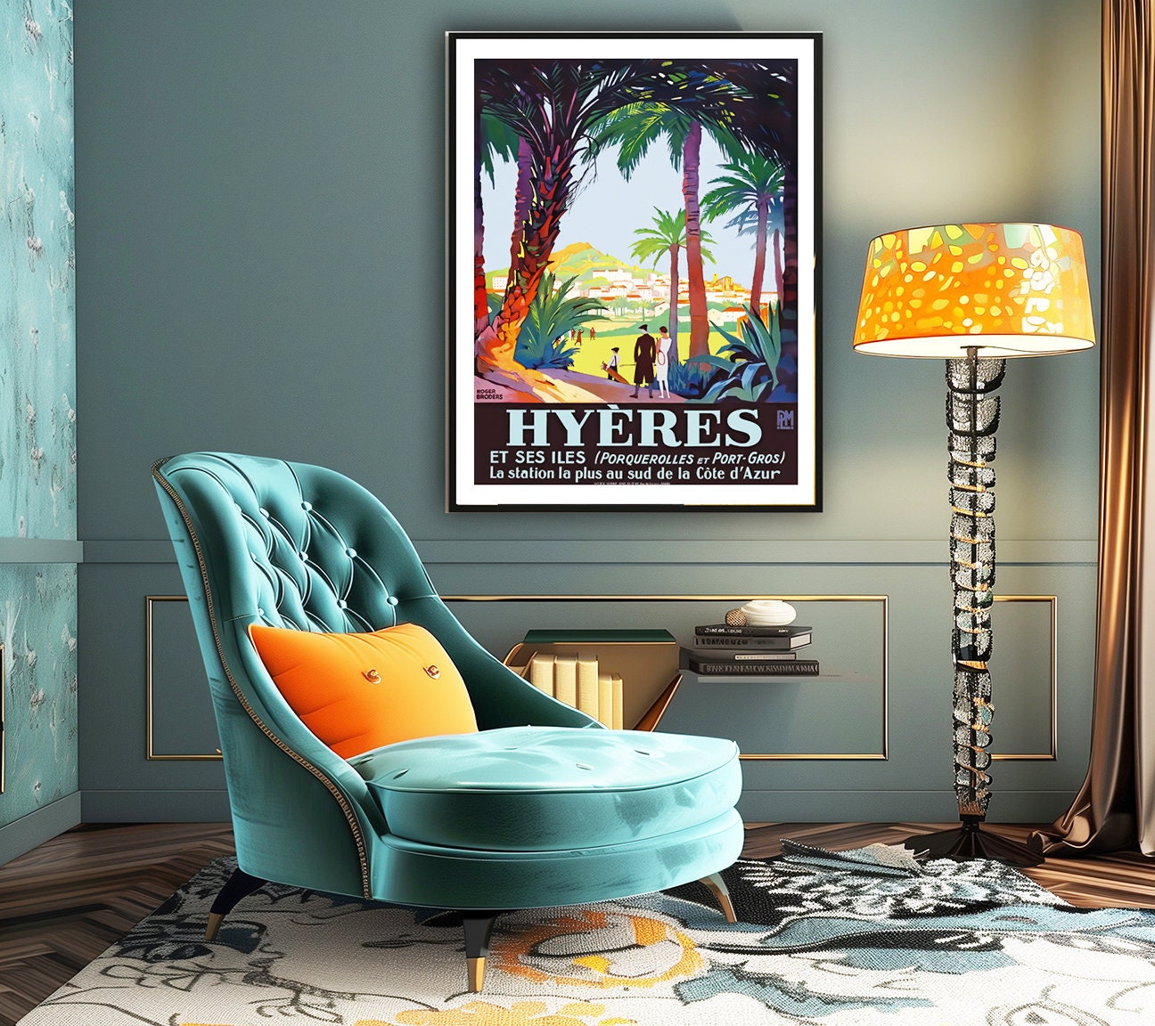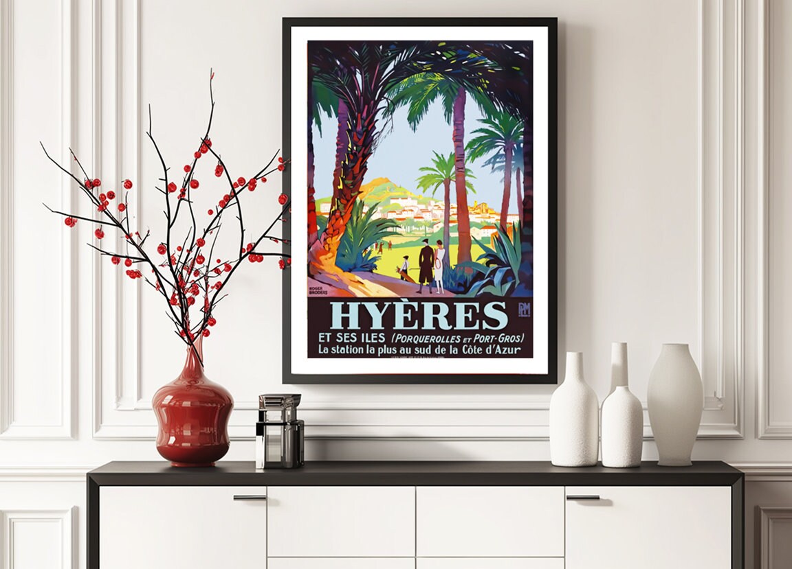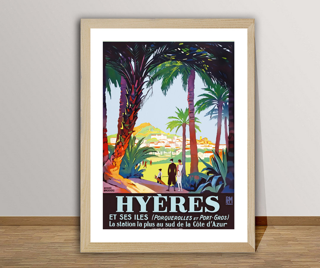Hyeres France Vintage Travel Poster: French Riviera Art Print