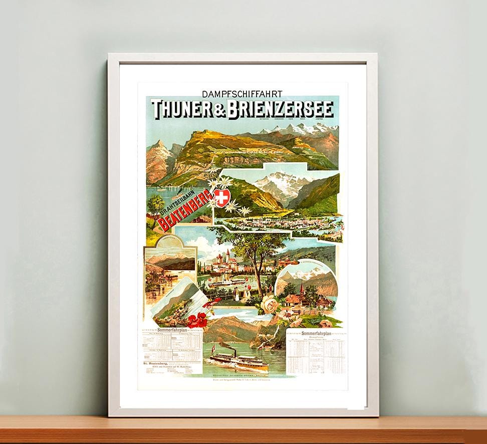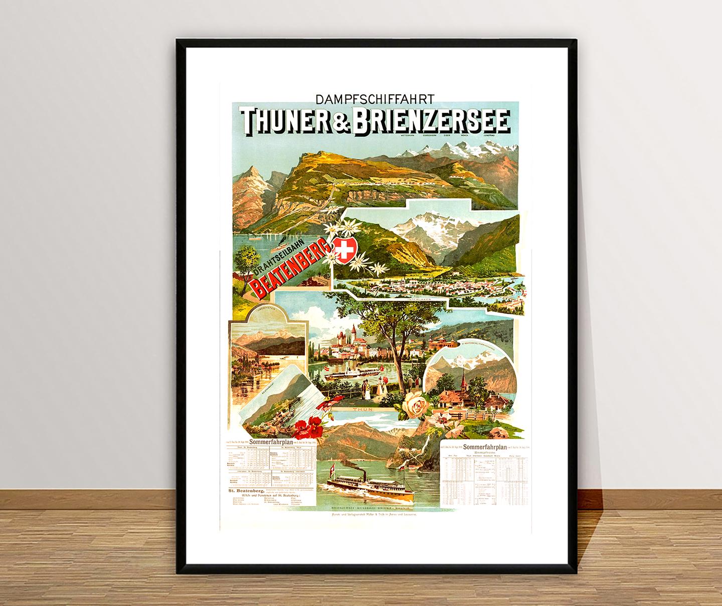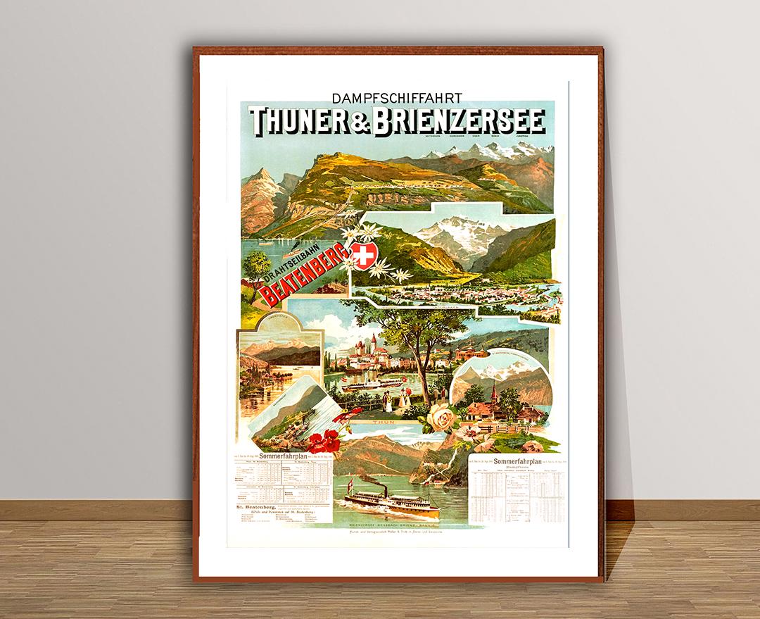 Vintage Thuner & Brienzersee Travel Poster: Suisse Retro Art Print