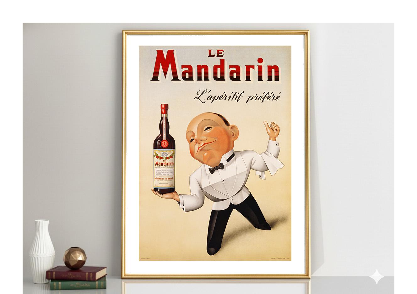 Vintage Le Mandarin l'Aperitif Prefere Advertisement Art Print - Reproduction of a Vintage Artwork, Decorative Purposes Wall Decor - Poster Paper or Canvas Giclee Print