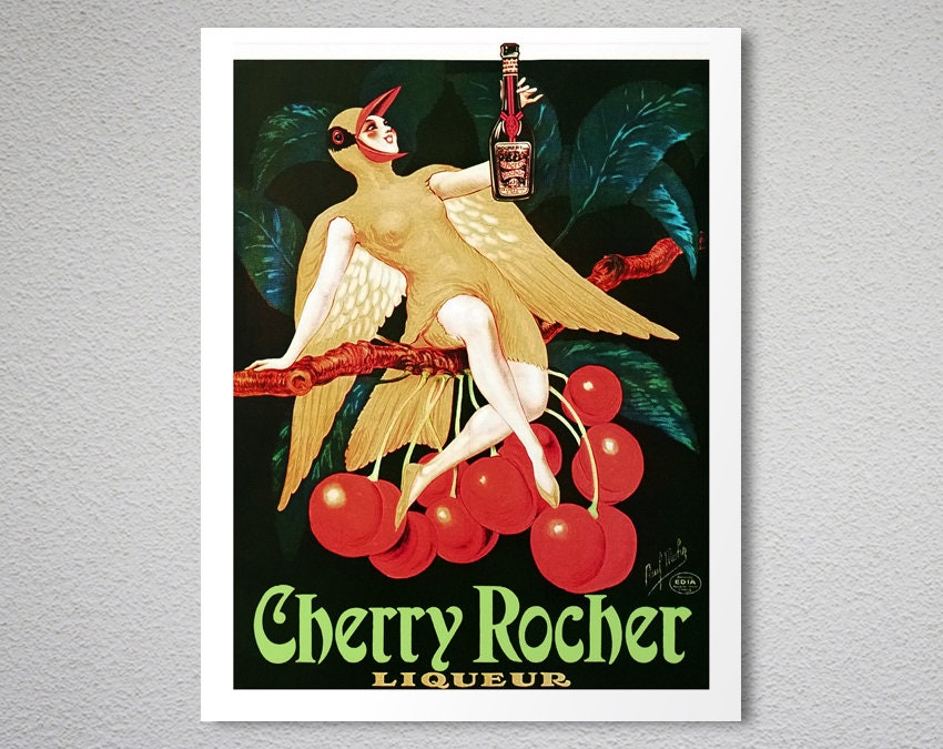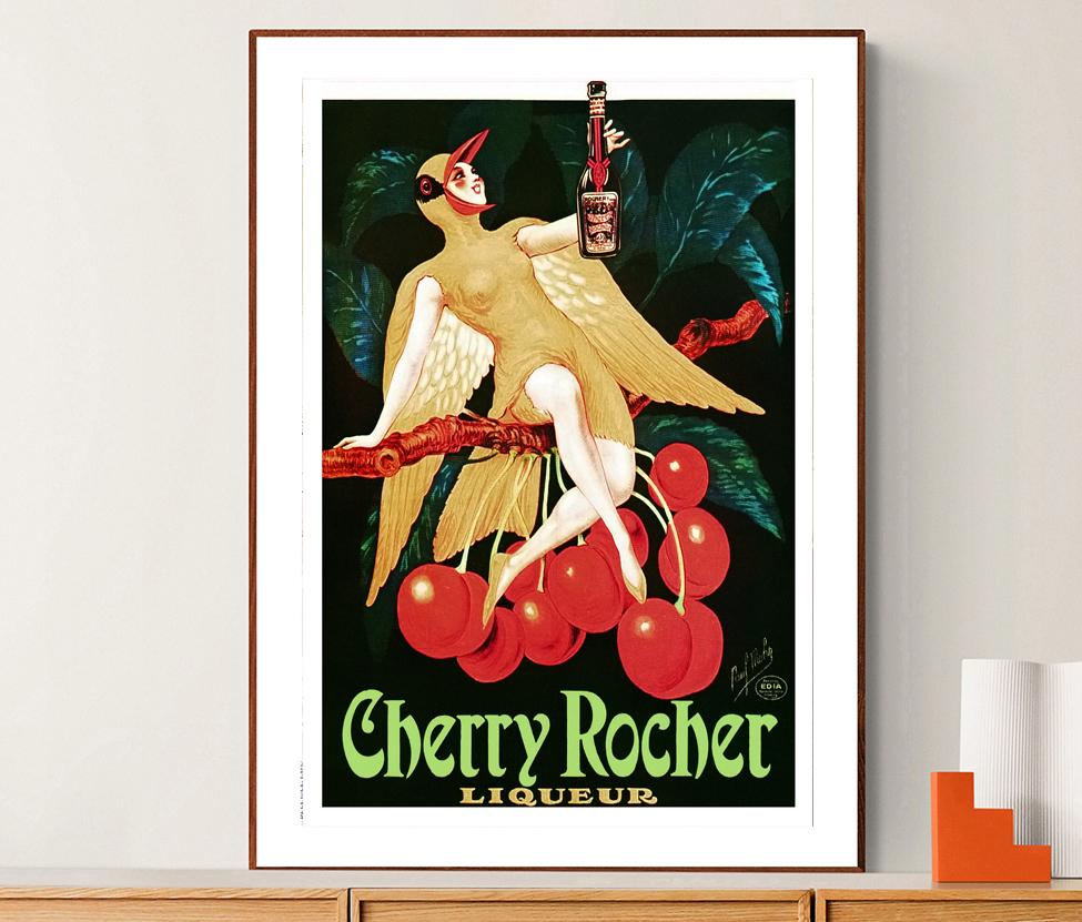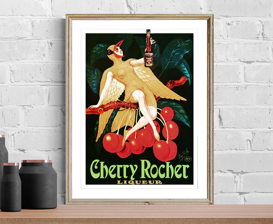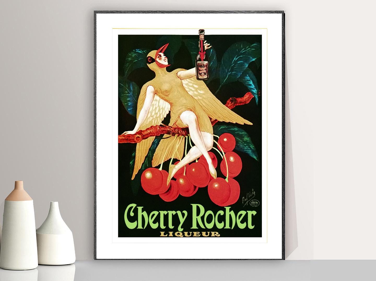 Vintage Cherry Rocher Liqueur Advertisement Art Print - Reproduction of a Vintage Artwork, Decorative Purposes Wall Decor
