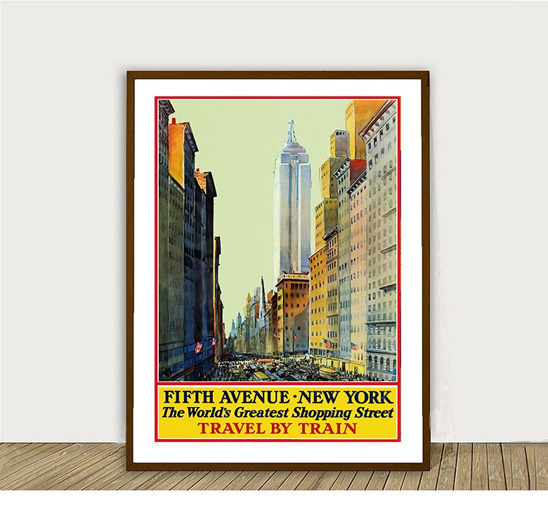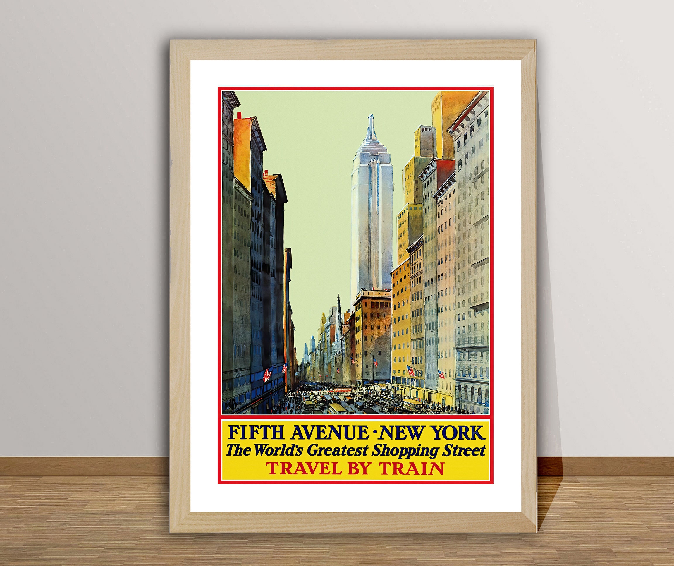 Fifth Avenue New York Vintage Travel Poster: Retro Wall Art