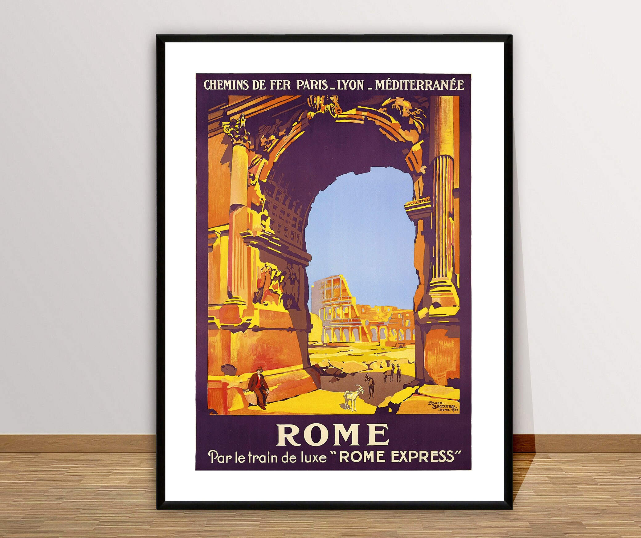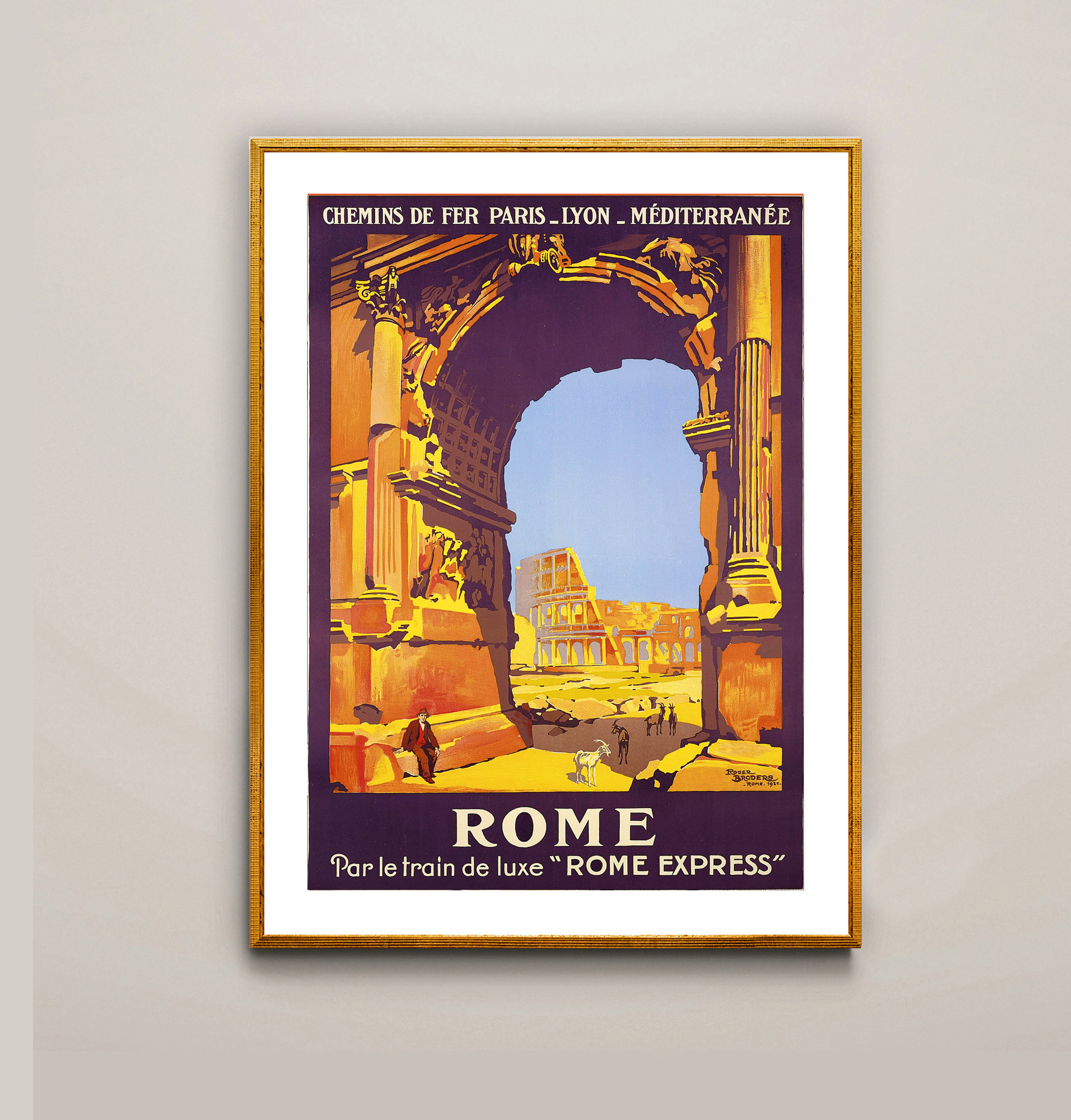 Rome par le Train des Luxe Rome Express Vintage Travel Poster - Poster Paper, Canvas Print / Gift Idea