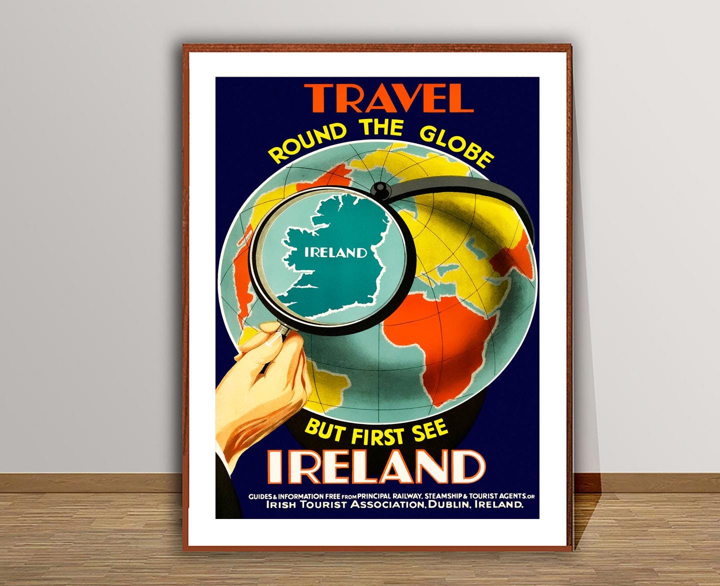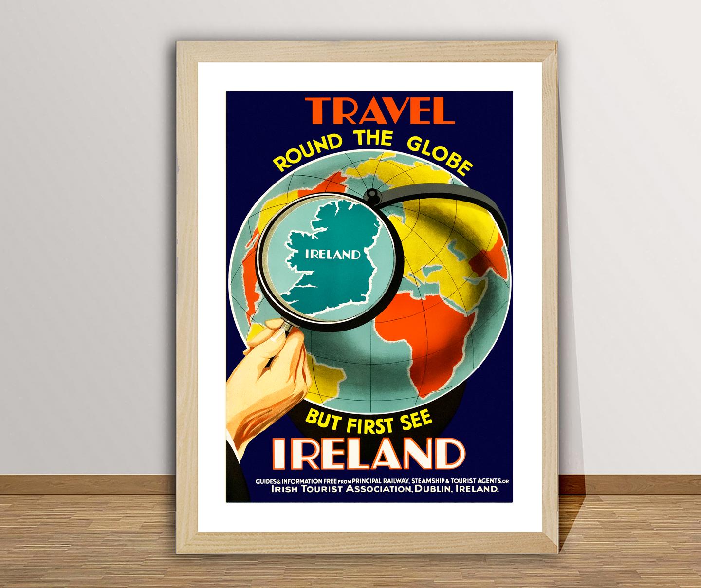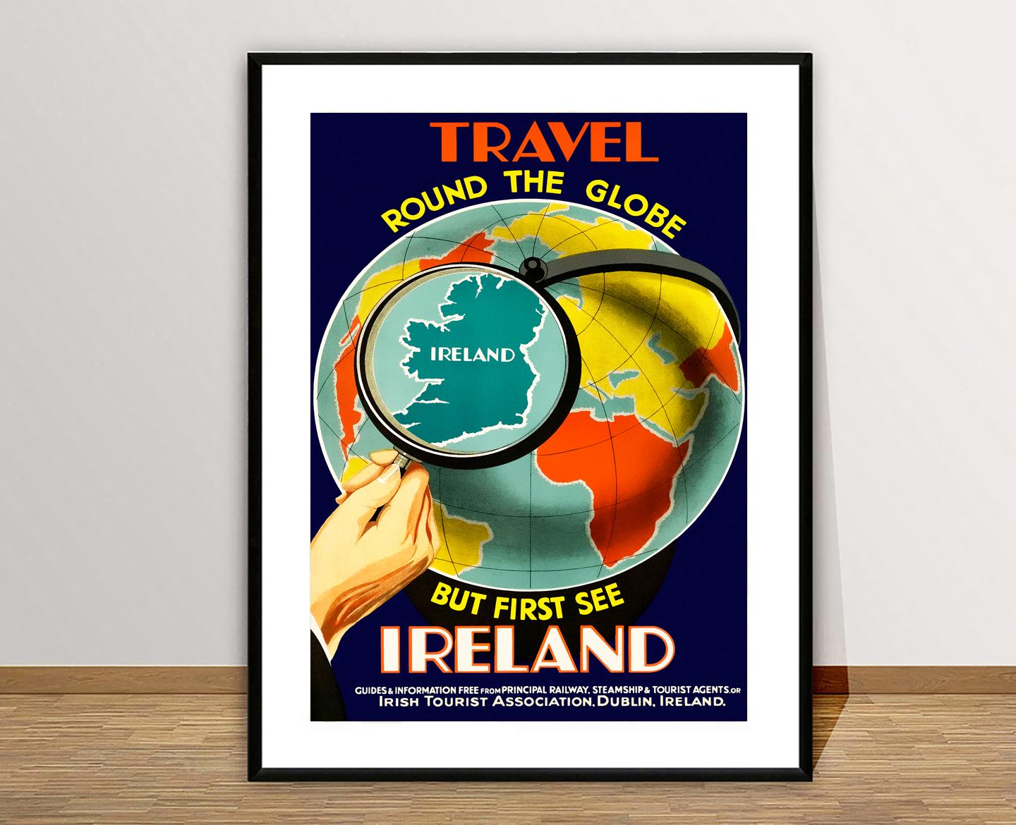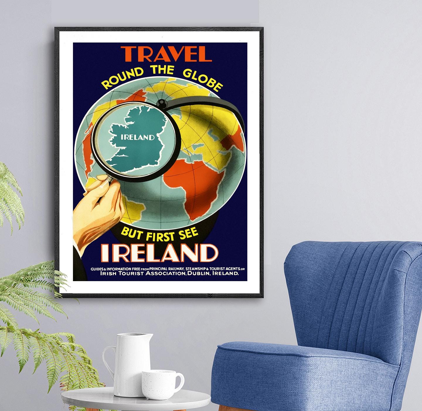 Travel Round the Globe, But First See Ireland Vintage Travel Poster - Poster Paper or Canvas Print