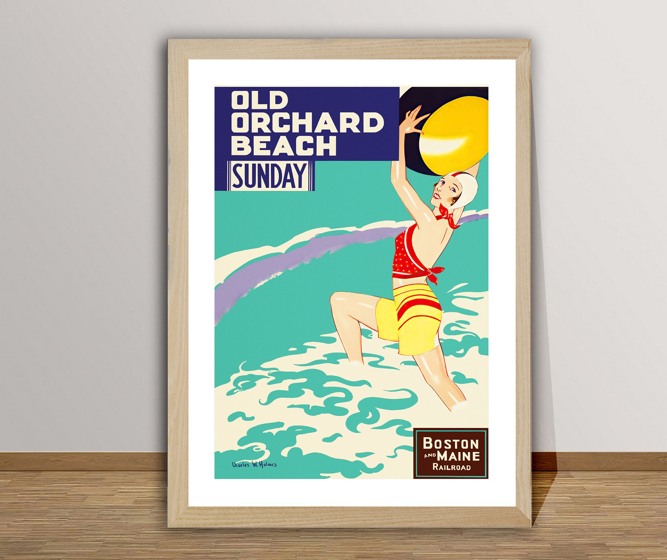 Old Orchard Beach Vintage Travel Poster: Maine Coast Art Print