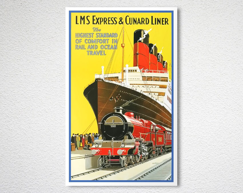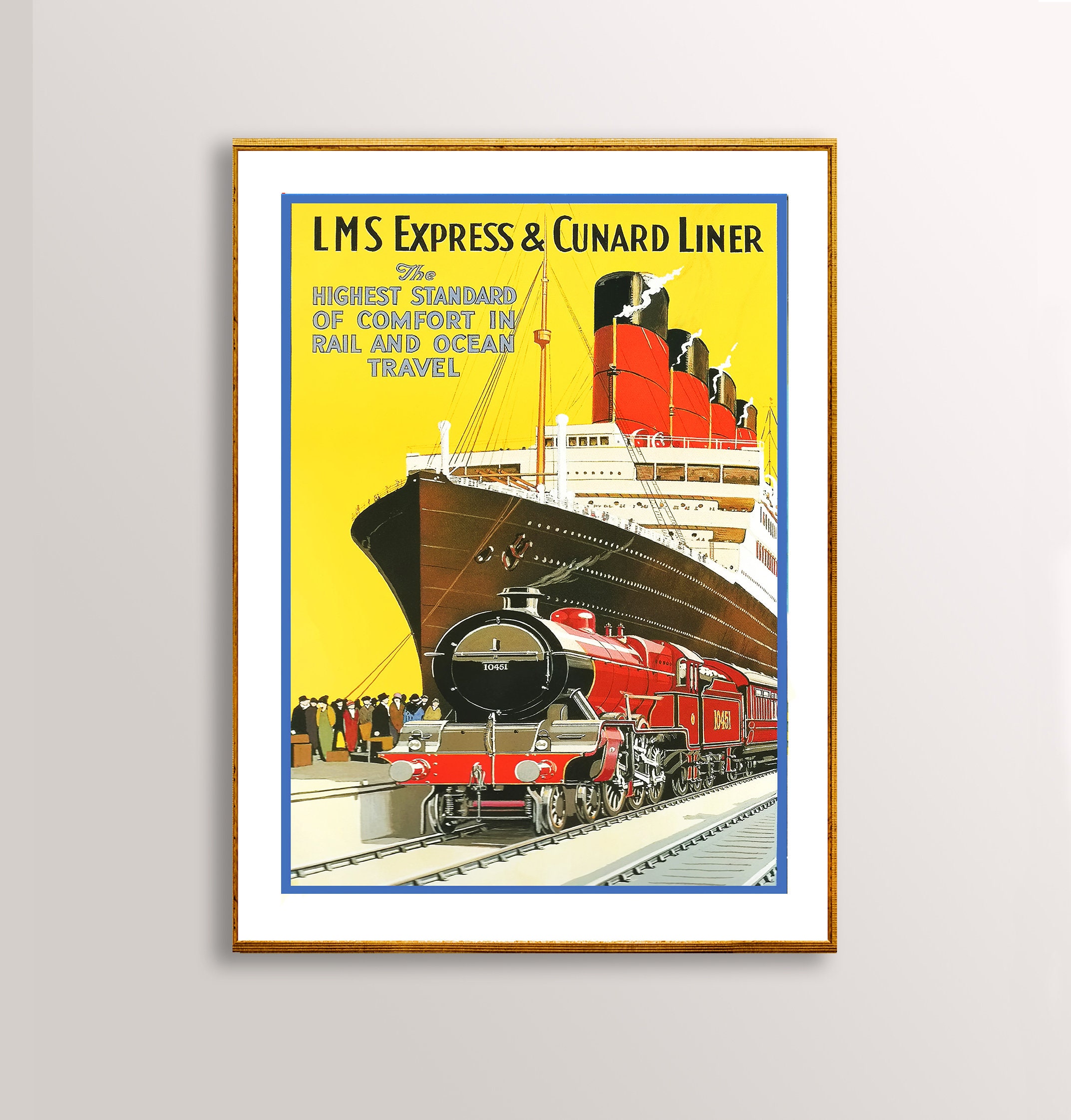 LMS Express di Cunard Liner, Ocean Travel Vintage Travel Poster - Poster Paper, Canvas Print / Gift Idea / Wall Decor