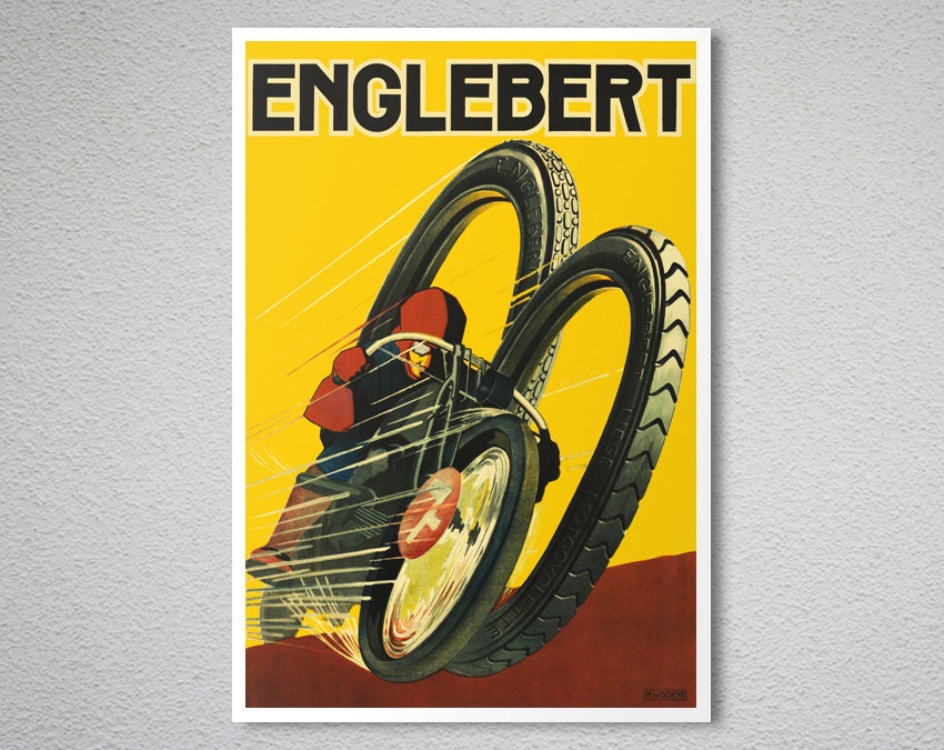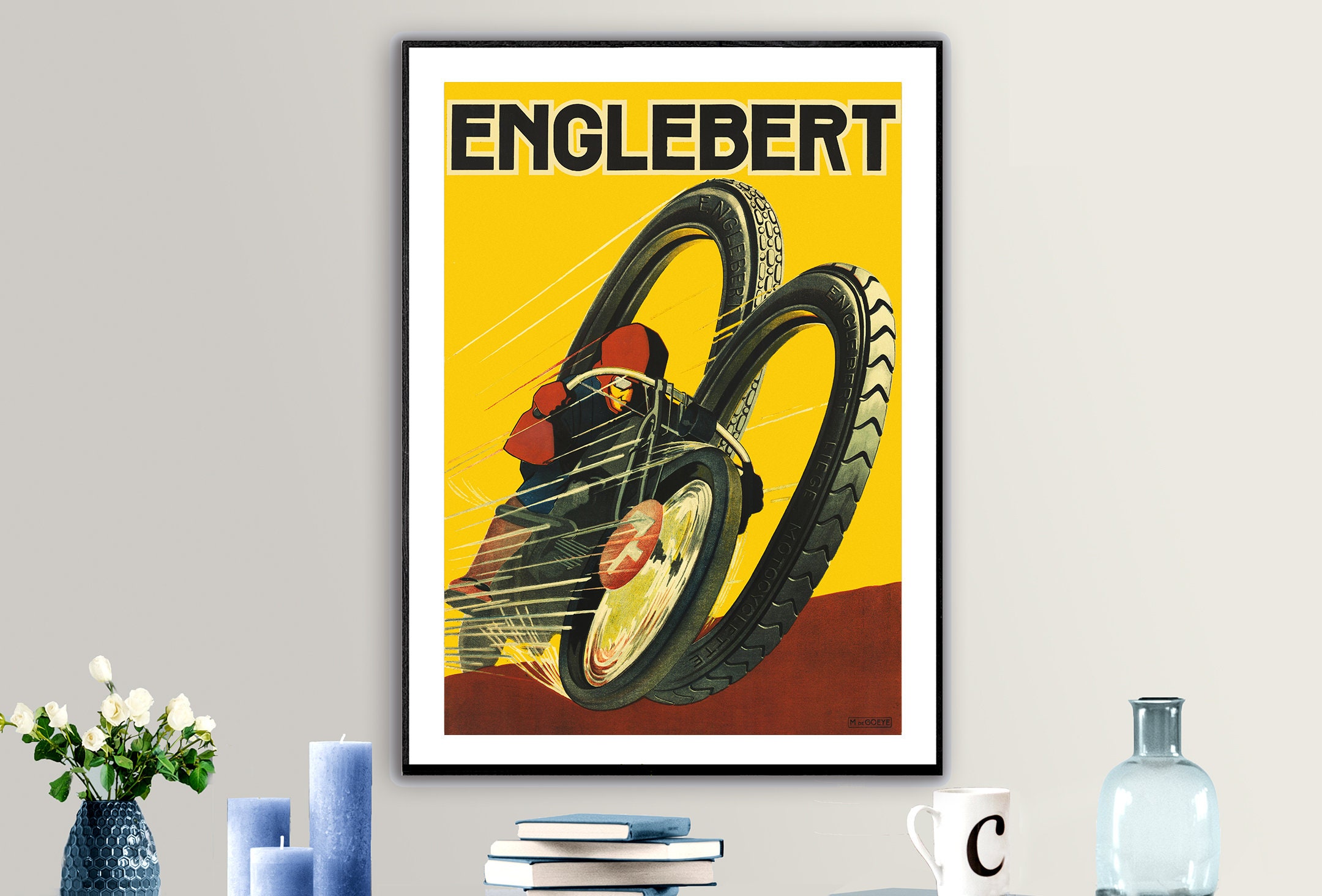 Vintage Englebert Advertisement Art Print - Reproduction of a Vintage Artwork, Decorative Purposes Wall Decor