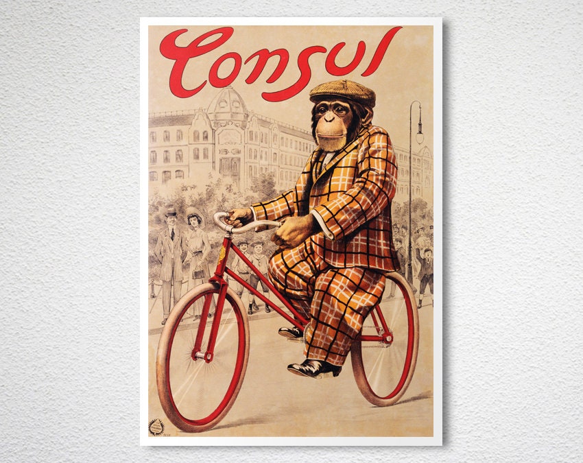Consul Vintage Bicycle Poster: Monkey Art Print