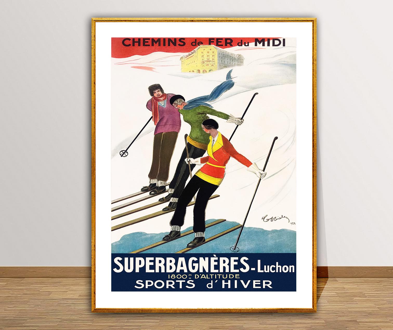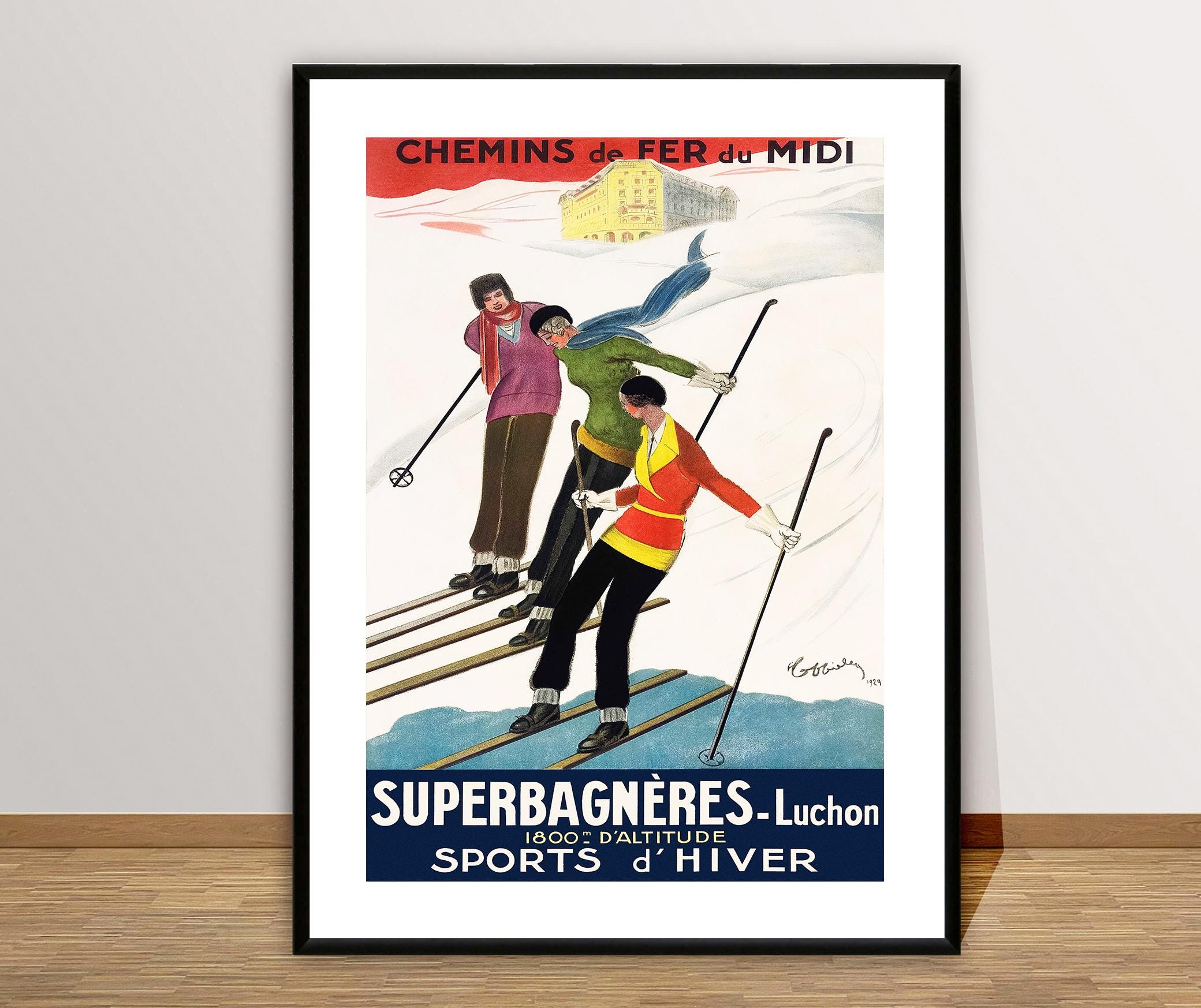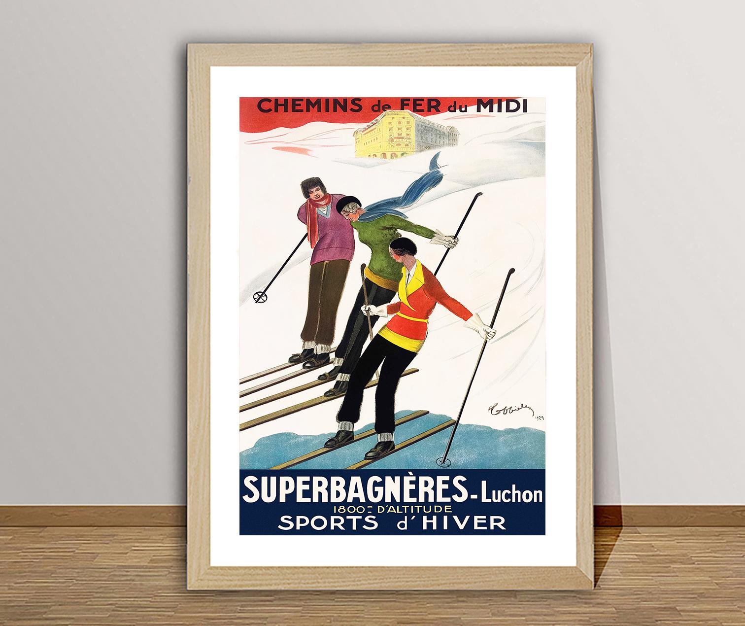 Superbagneres Luchon Vintage Ski Travel Poster - Poster Paper, Canvas Print / Gift Idea / Wall Decor