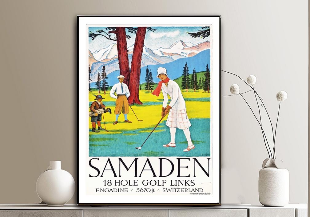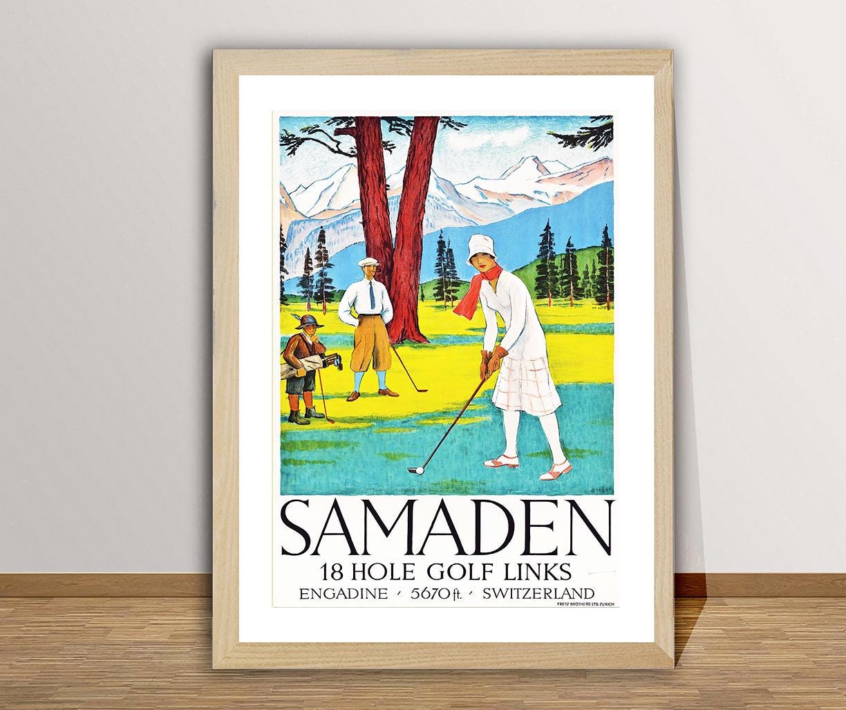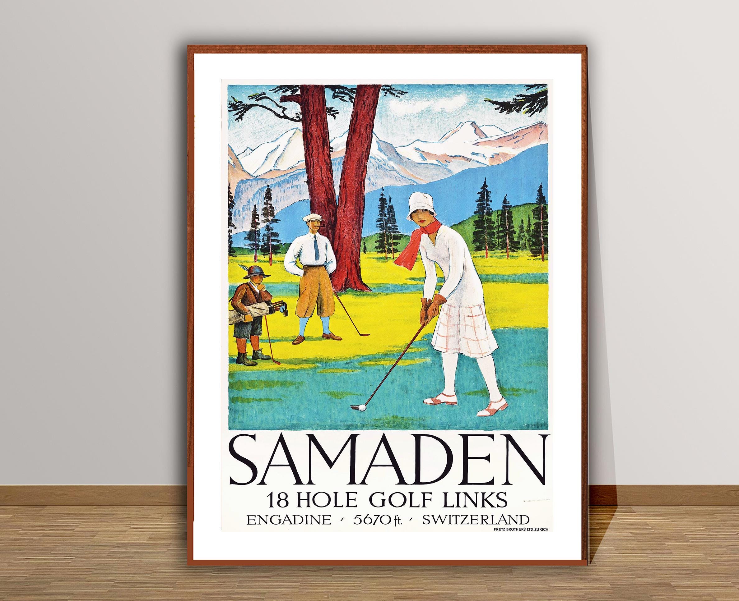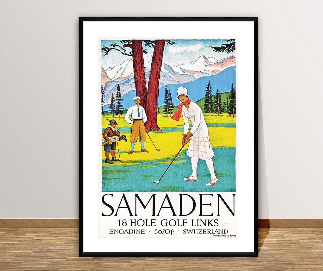 Vintage Golf Art Print: Samaden, Switzerland Travel Poster