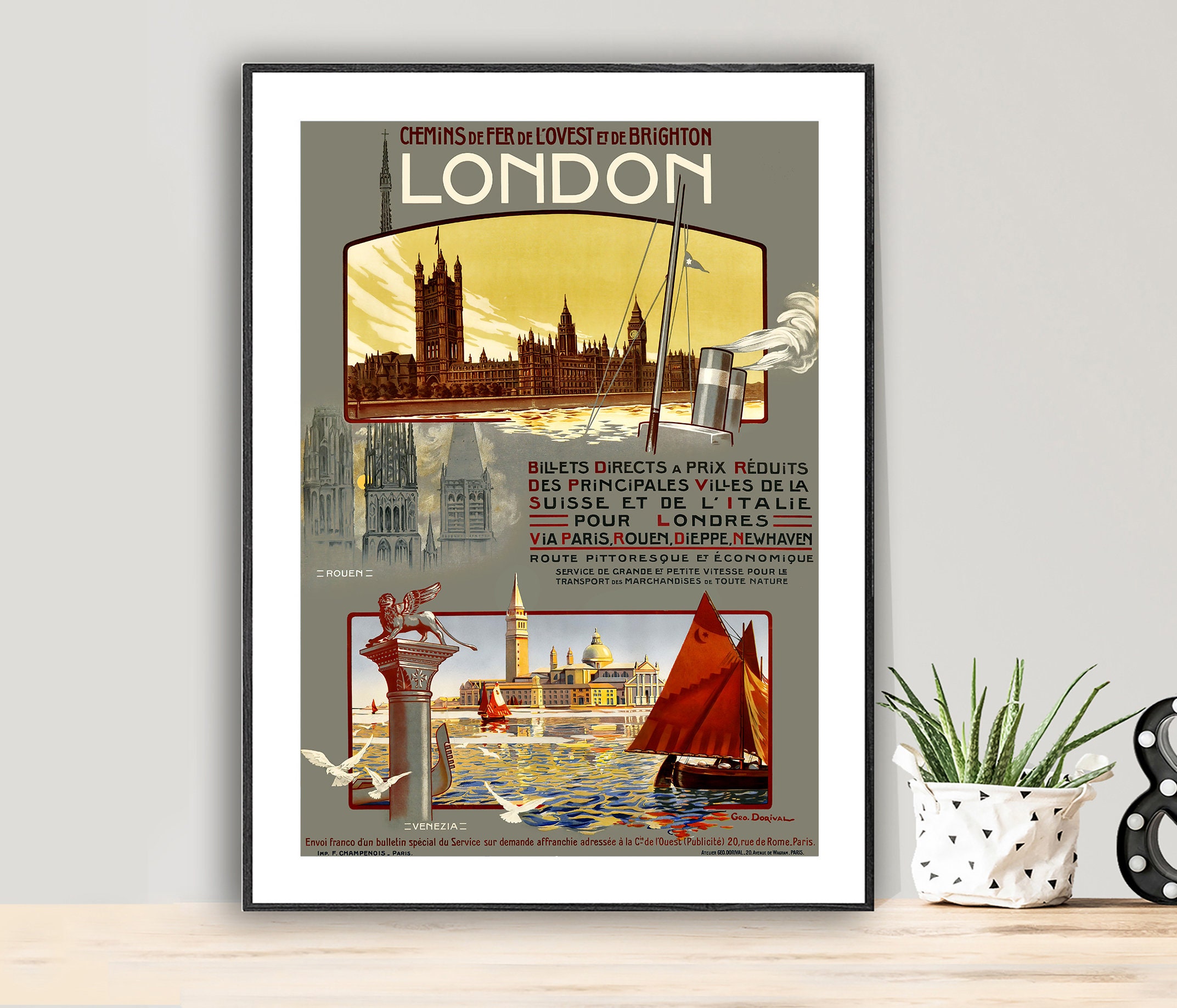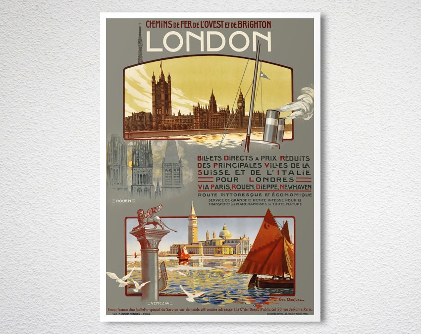 London, Chemin de Fer et de L'Ovest de Brighton Vintage Travel Poster - Poster Print or Canvas Print