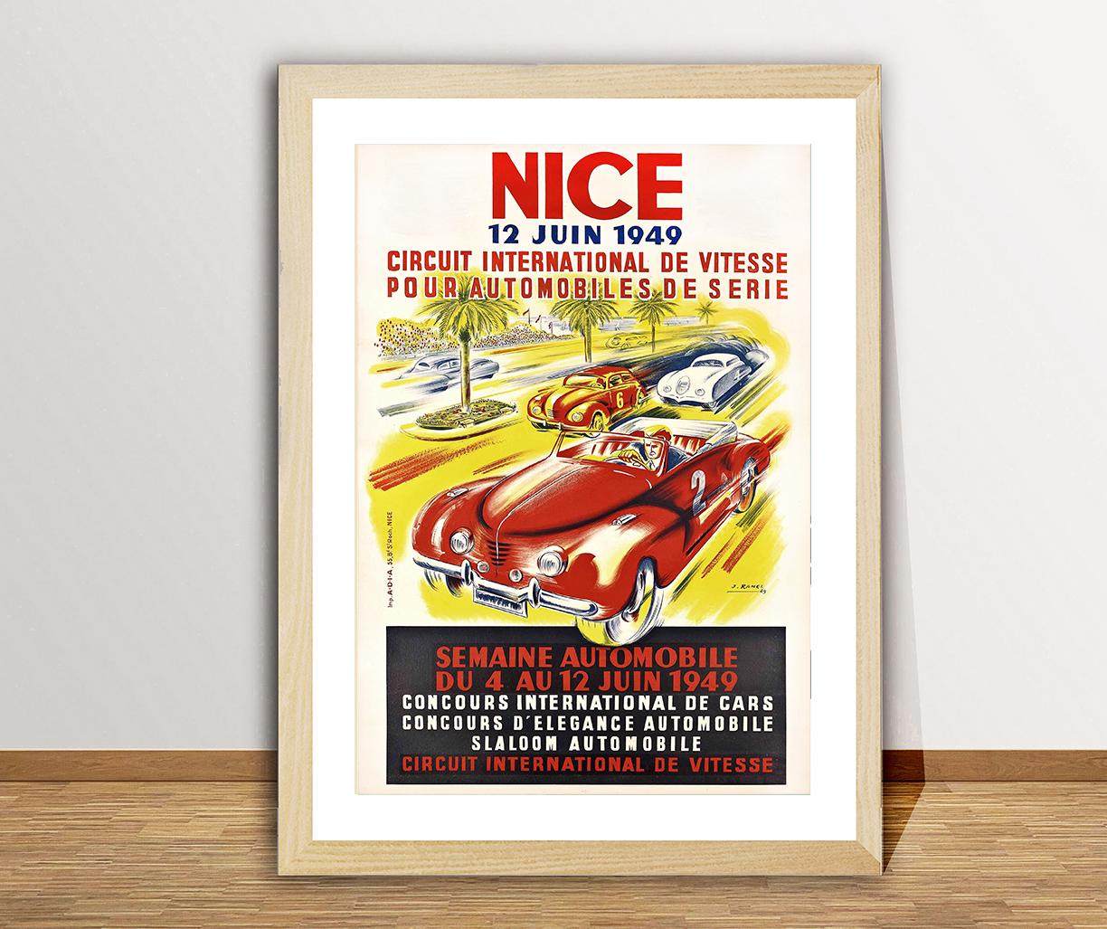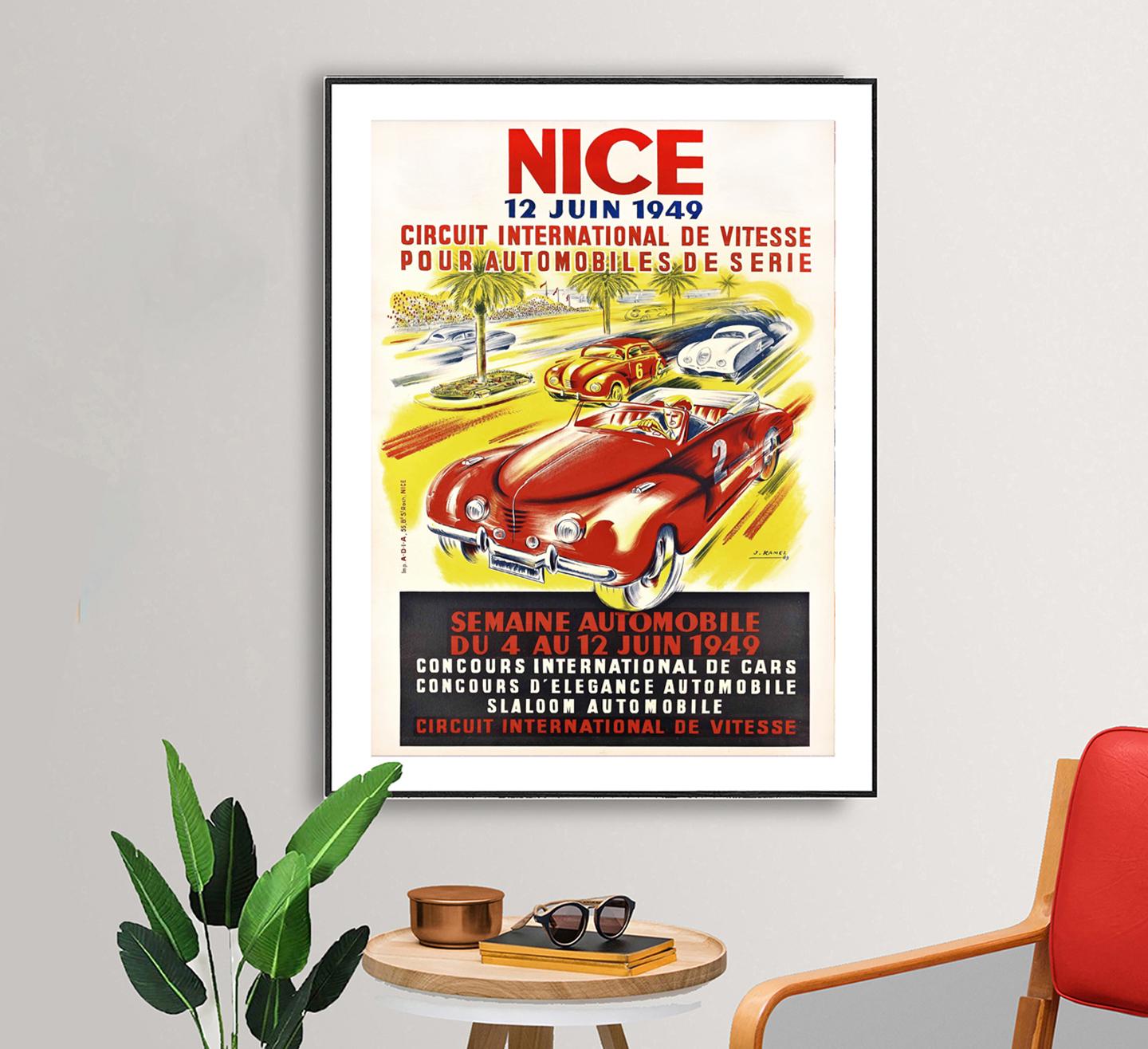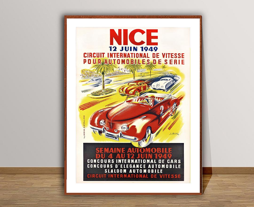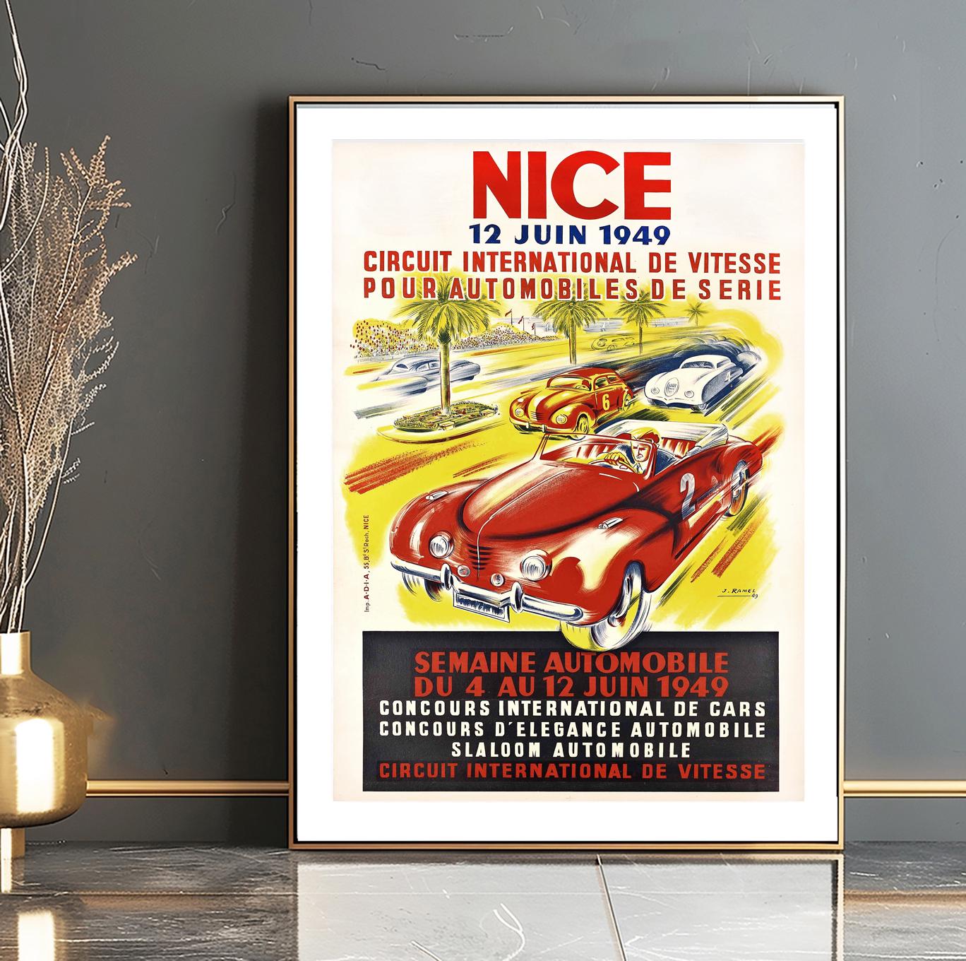 Nice, Circuit International de Vitesse Pour Automobiles de Serie , 1949 Vintage Grand Prix Poster - Poster Paper or Canvas Print