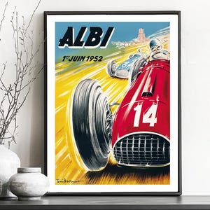GICLEE printed on high quality paper, cotton canvas or adhesive sticker paper. A high quality reproduction of vintage grand prix poster. Professional packaging for safe shipping. All images (dimensions) include a white border. (The white border can be removed. Please write a note when ordering.)