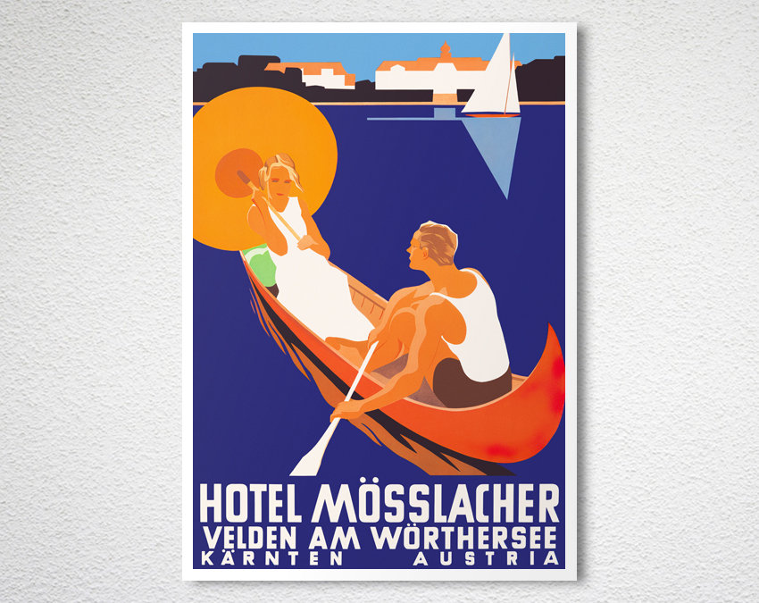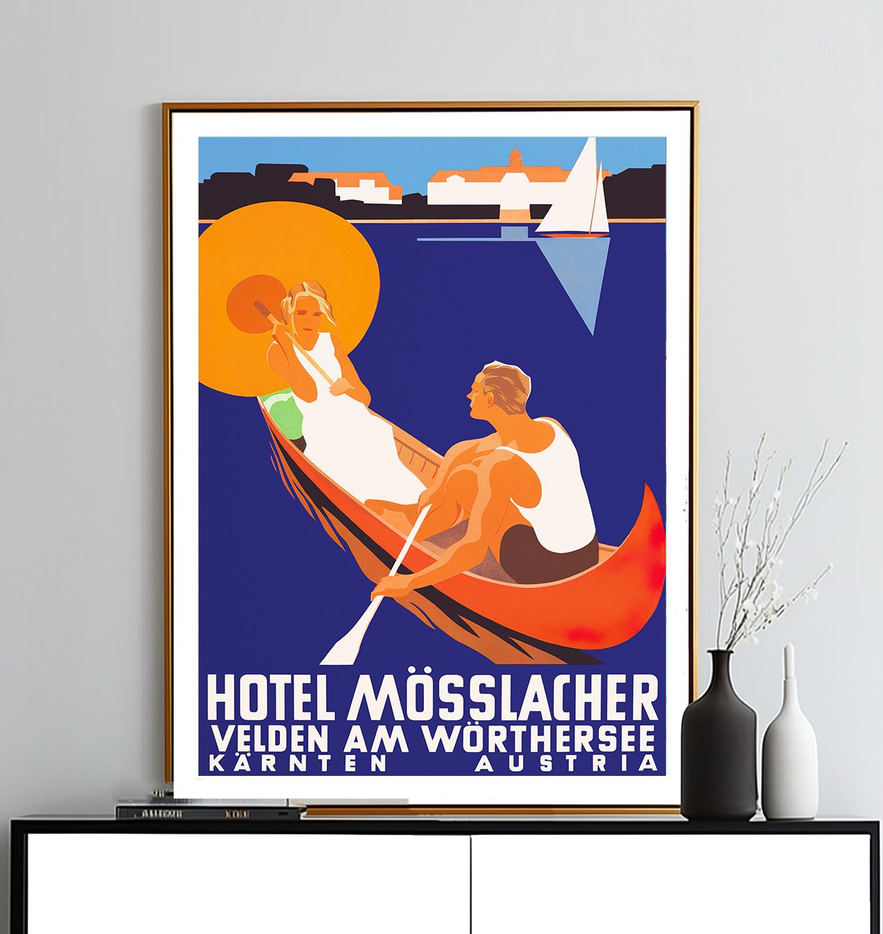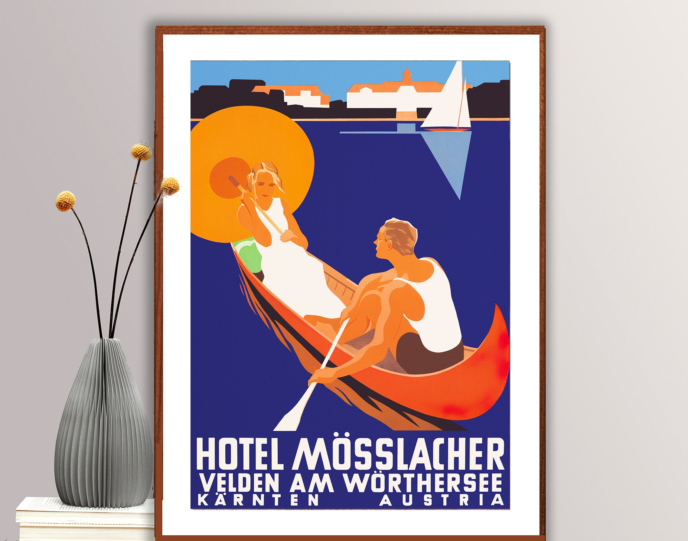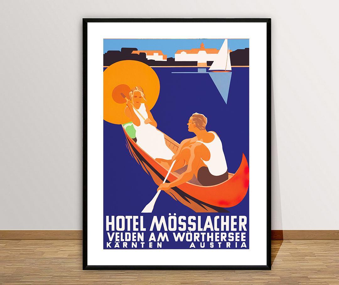 Hotel Mösslacher, Velden am Wörthersee, Carinthia, Austria Vintage Travel Poster - Poster or Canvas Print / Gift Idea / Wall Art