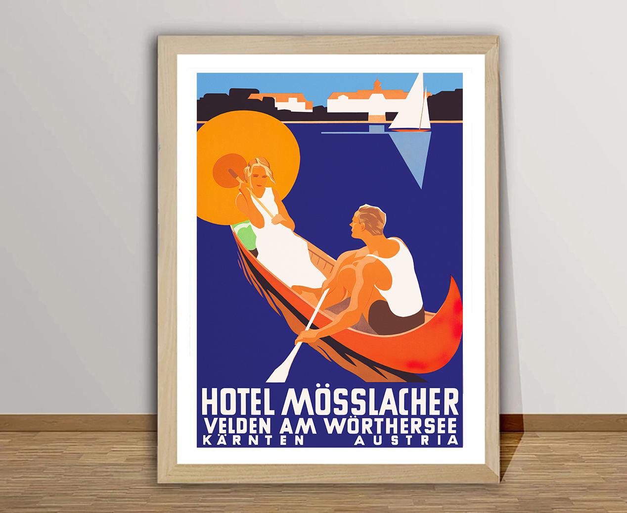 Hotel Mösslacher, Velden em Wörthersee, Karnten Austria Vintage Travel Poster