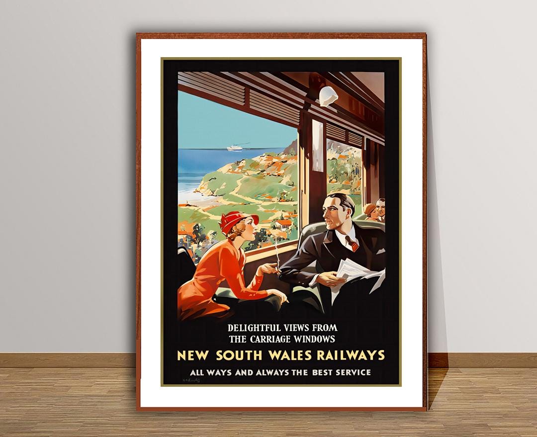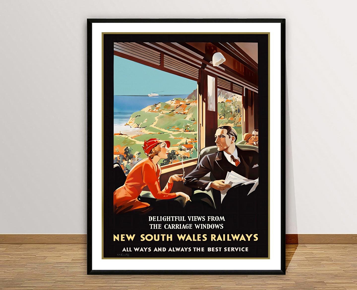 Delightful Views from the Carriage Windows New South Wales Railways Vintage Travel Poster - Poster Paper or Canvas Giclee Print