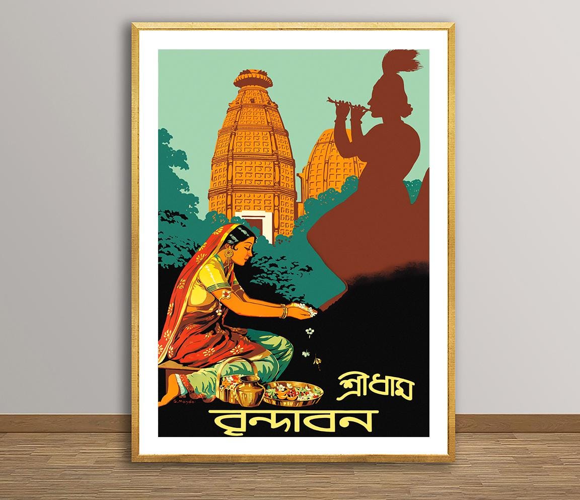 Sree Dham Brindaban India Vintage Travel Poster - Poster Paper or Canvas Print / Gift Idea / Wall Decor
