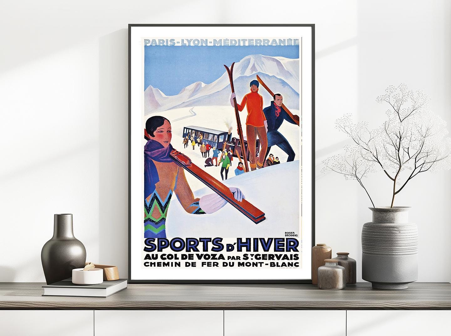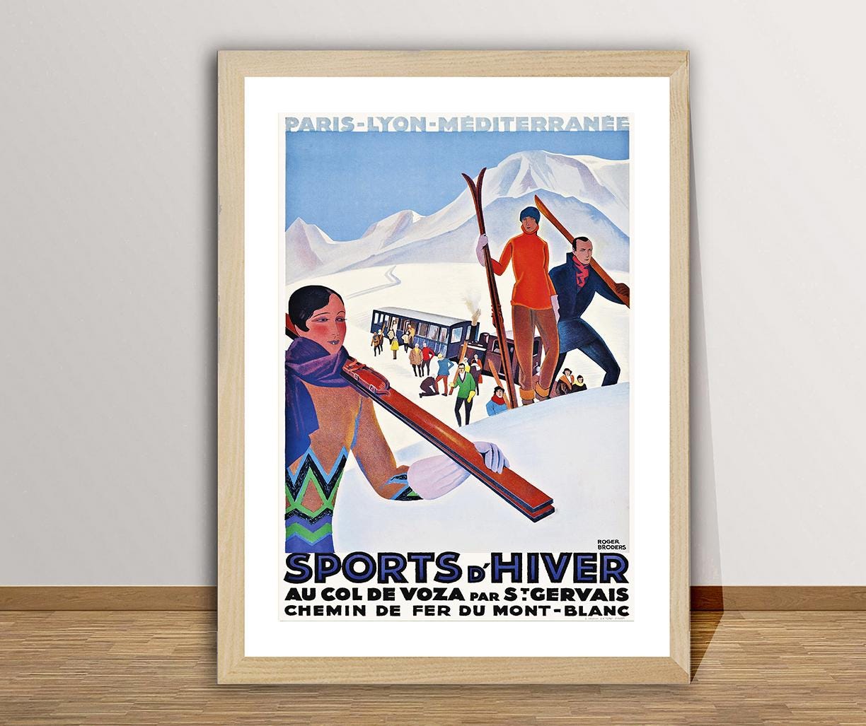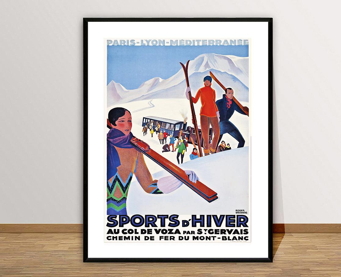 Sports d'Hiver Au Col de Voza par St. Gervais, Chemin de Fer du Mont Blanc France Vintage Travel Poster - Poster Paper, Canvas Print / Gift Idea / Wall Decor