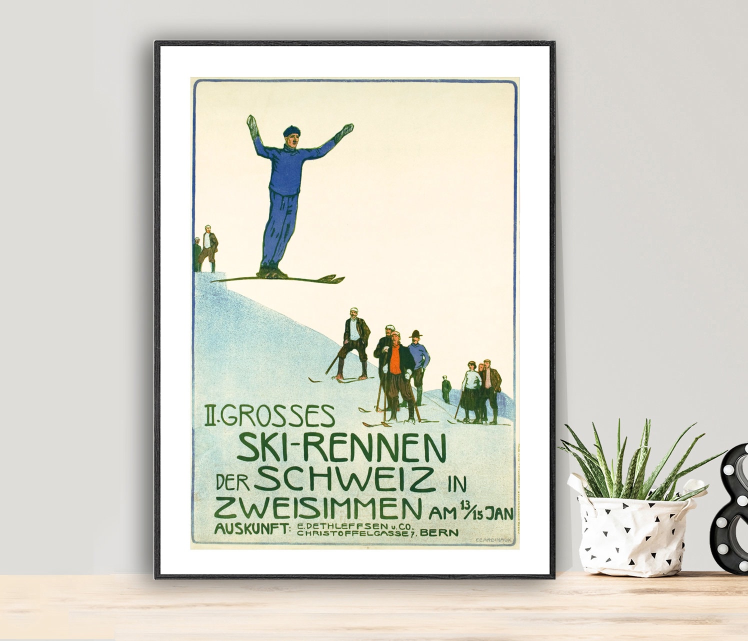 Printed on high quality paper, cotton canvas or adhesive sticker paper. A high quality reproduction of vintage ski poster. Professional packaging for safe shipping. All images (dimensions) include a white border. (The white border can be removed. Please write a note when ordering.)