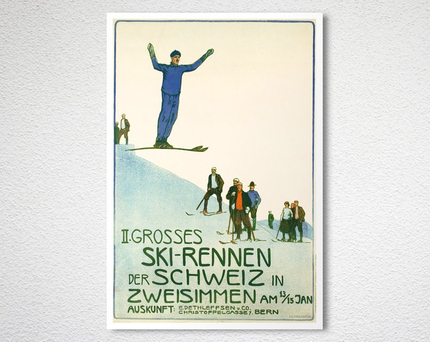 II Grosses Ski Rennen der Schweiz in Zweisimmen Vintage Skiing Travel Poster - Poster Paper or Canvas Print / Gift Idea