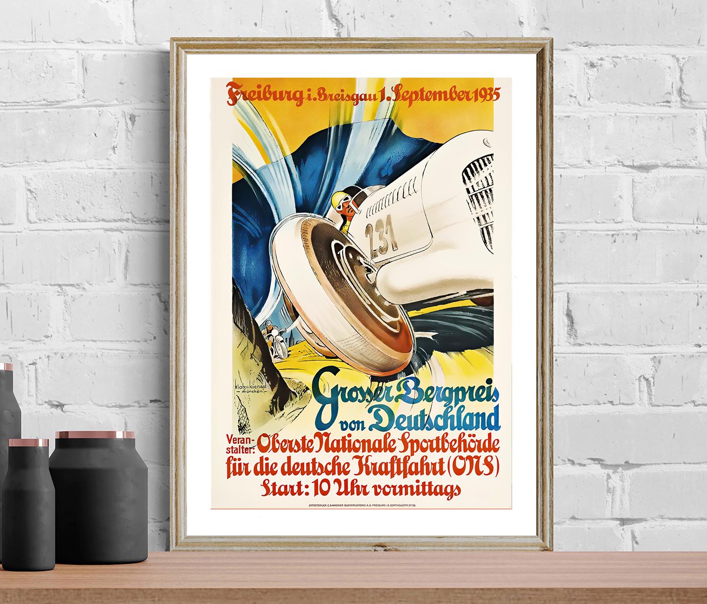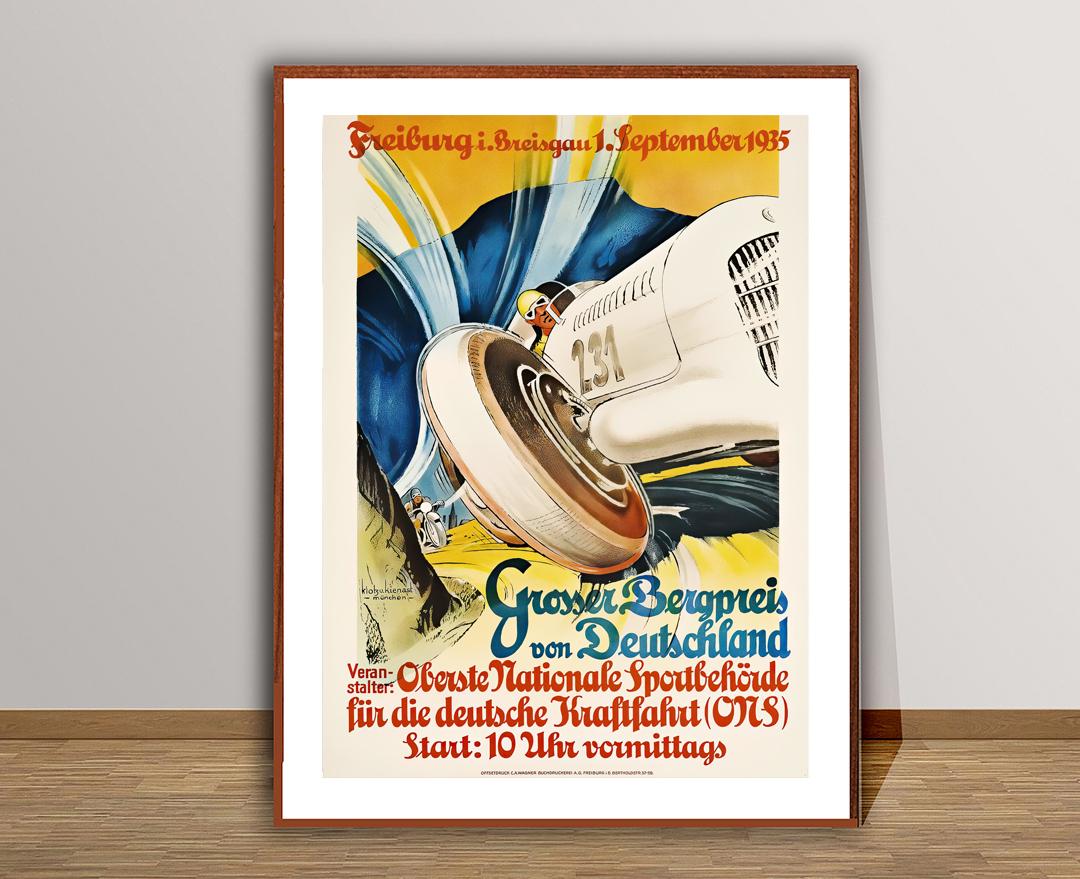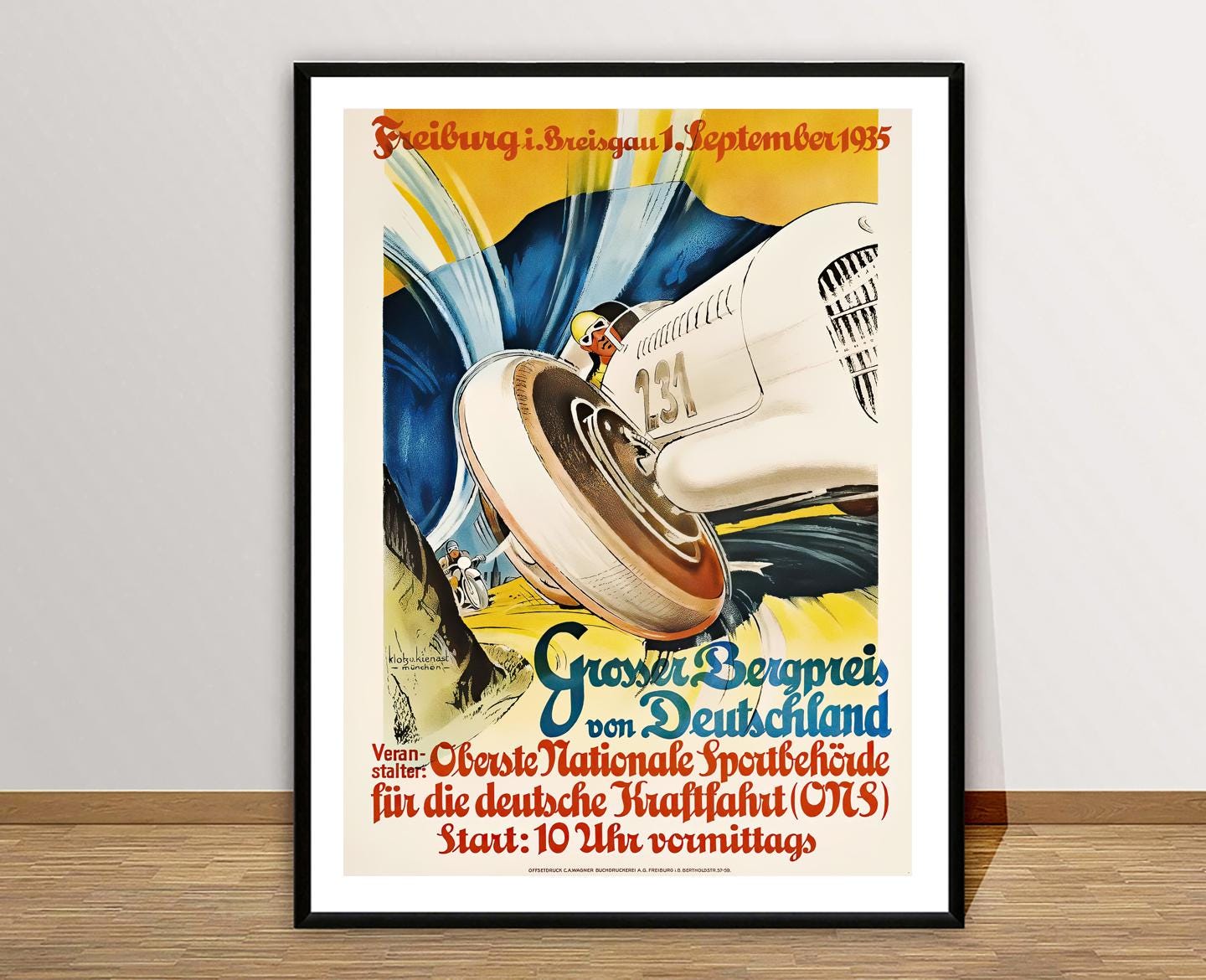 Grosser Bergpreis von Deutschland, Freiburg 1935 Vintage Grand Prix Poster - Poster Print or Canvas Giclee Print