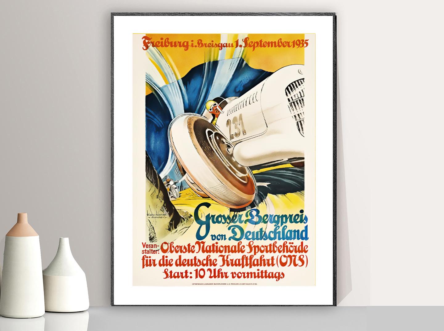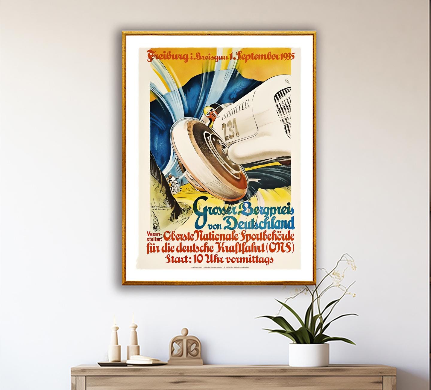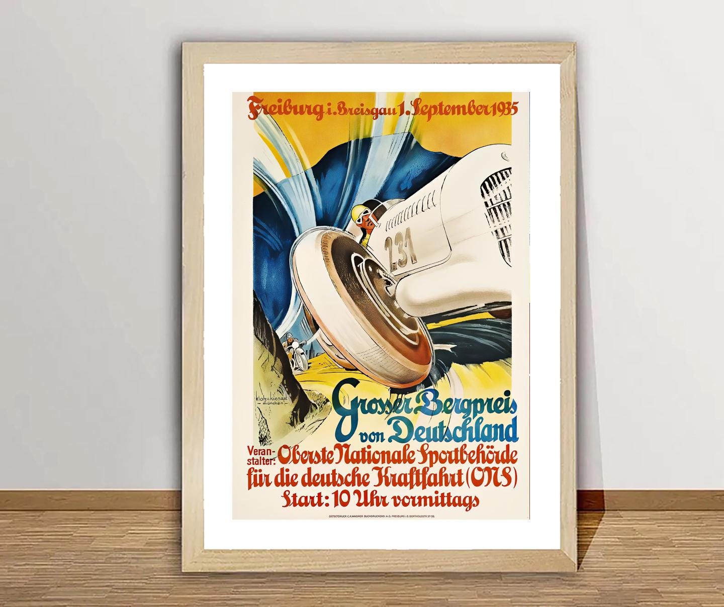 Grosser Bergpreis von Deutschland, Freiburg 1935 Vintage Grand Prix Poster - Poster Print or Canvas Giclee Print