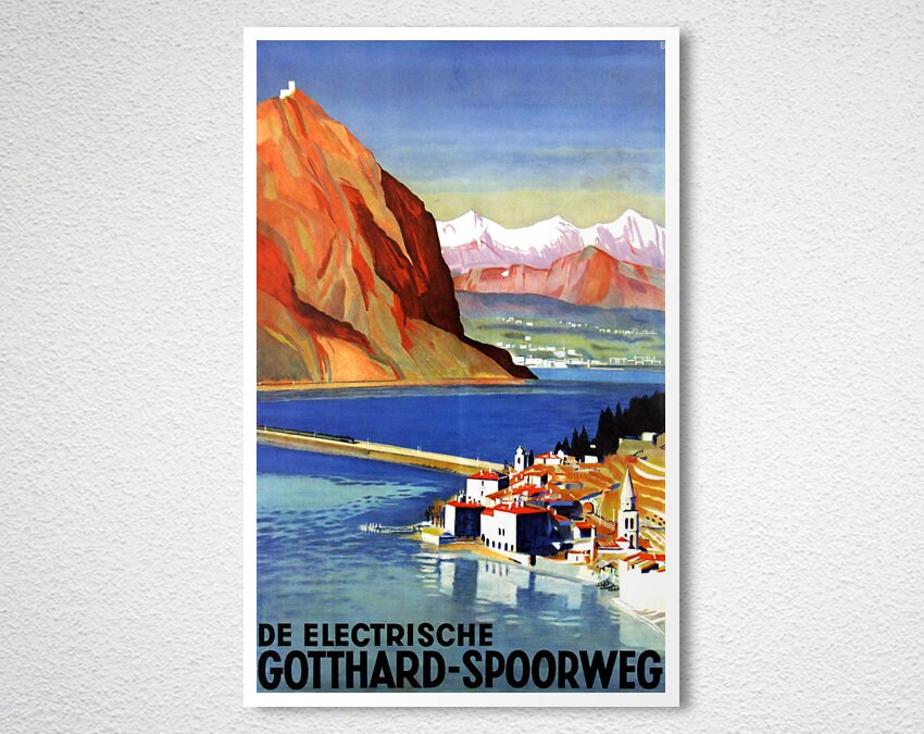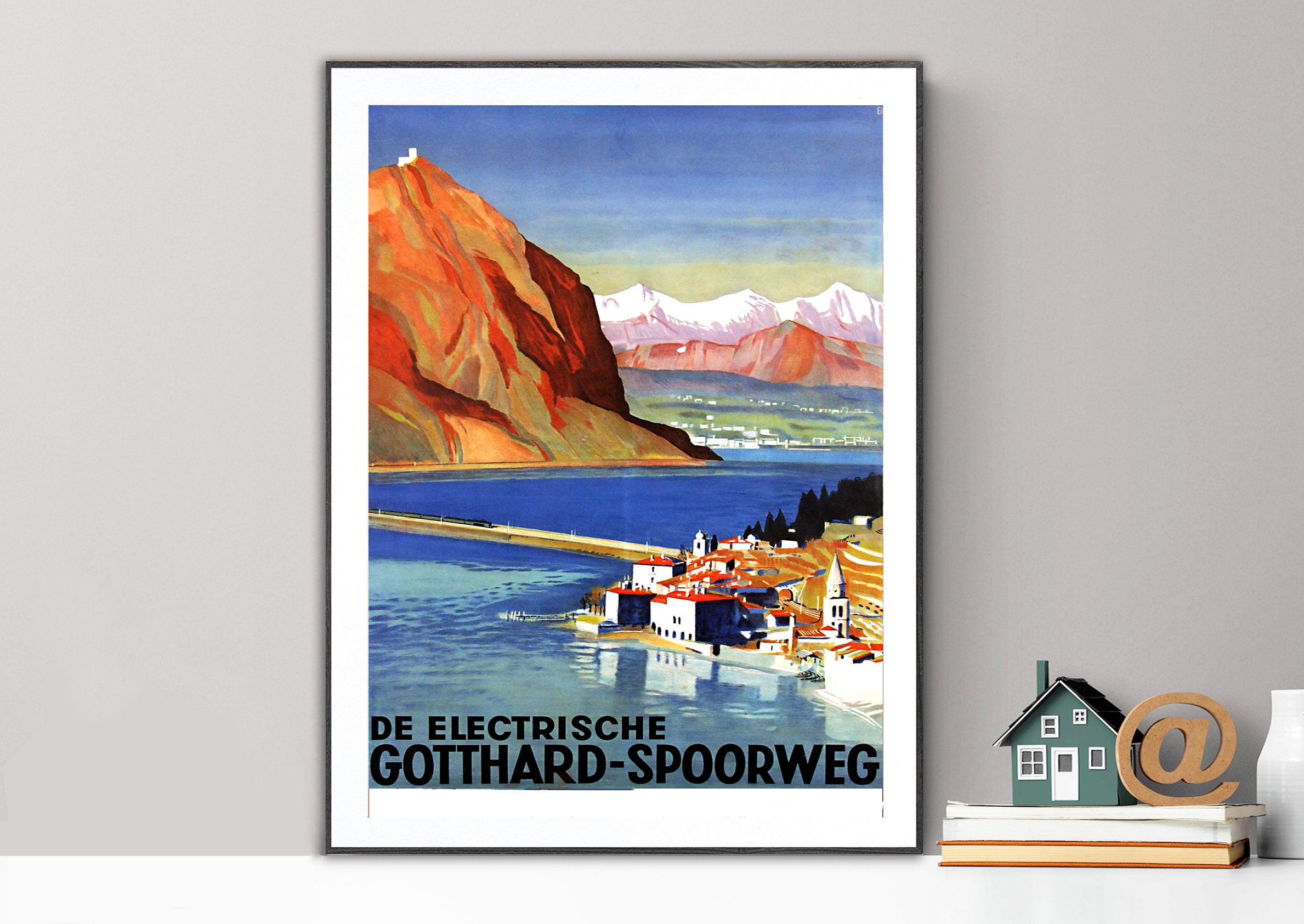 Gotthard, Spoorweg, Switzerland Vintage Travel Poster - Poster Paper or Canvas Print / Gift Idea / Wall Decor