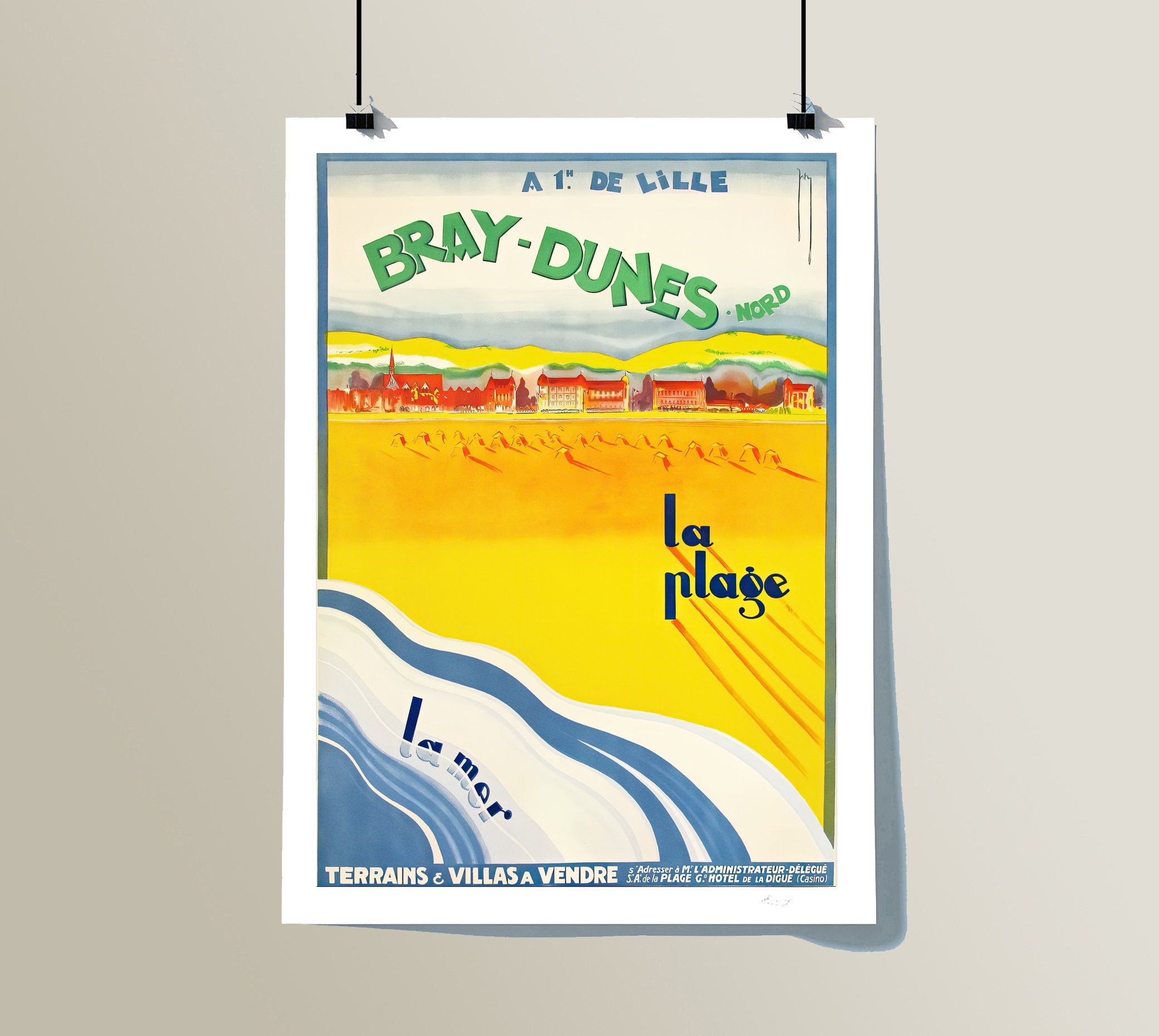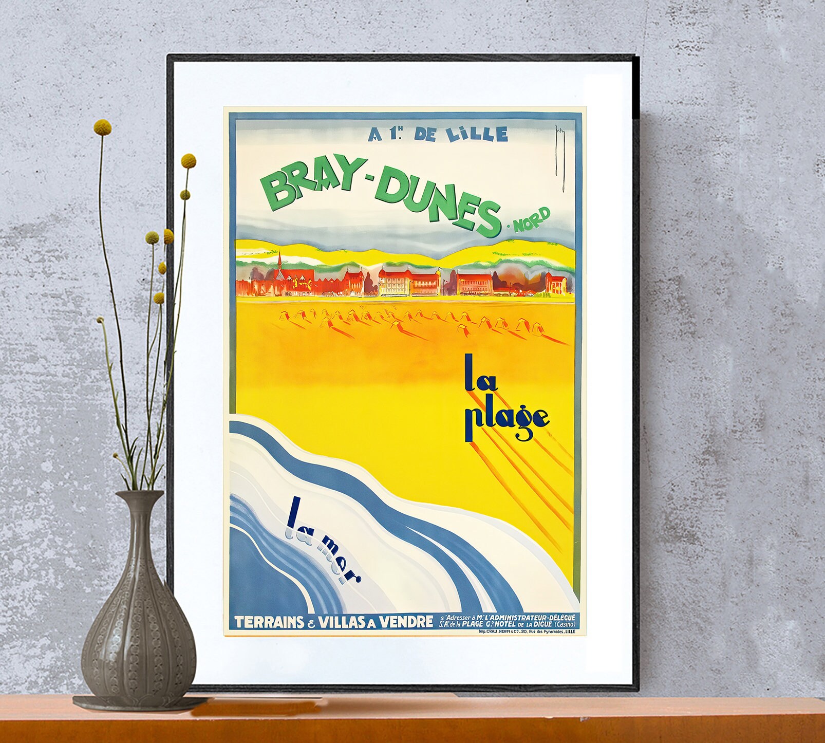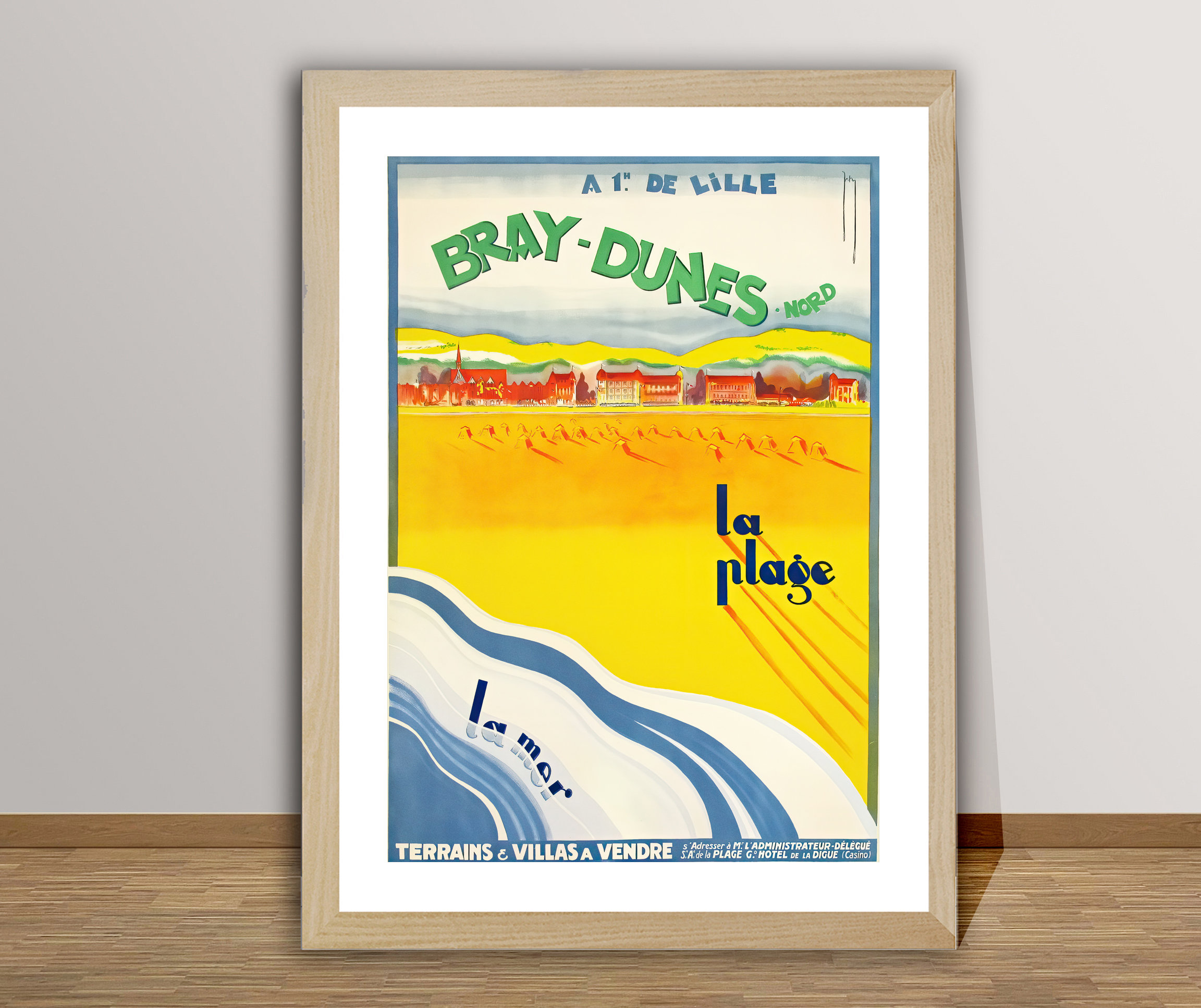 Bray Dunes Nord La Plage, France Vintage Travel Poster - Poster Paper or Canvas Print / Gift Idea / Wall Decor