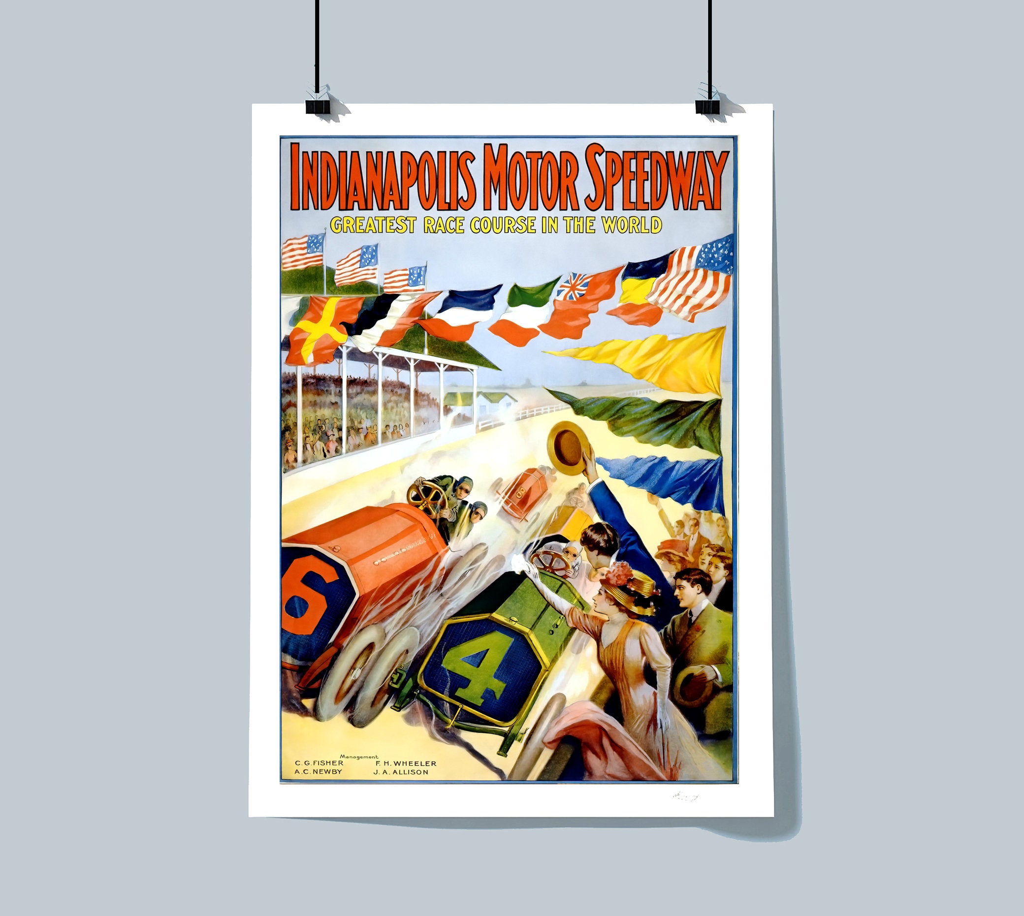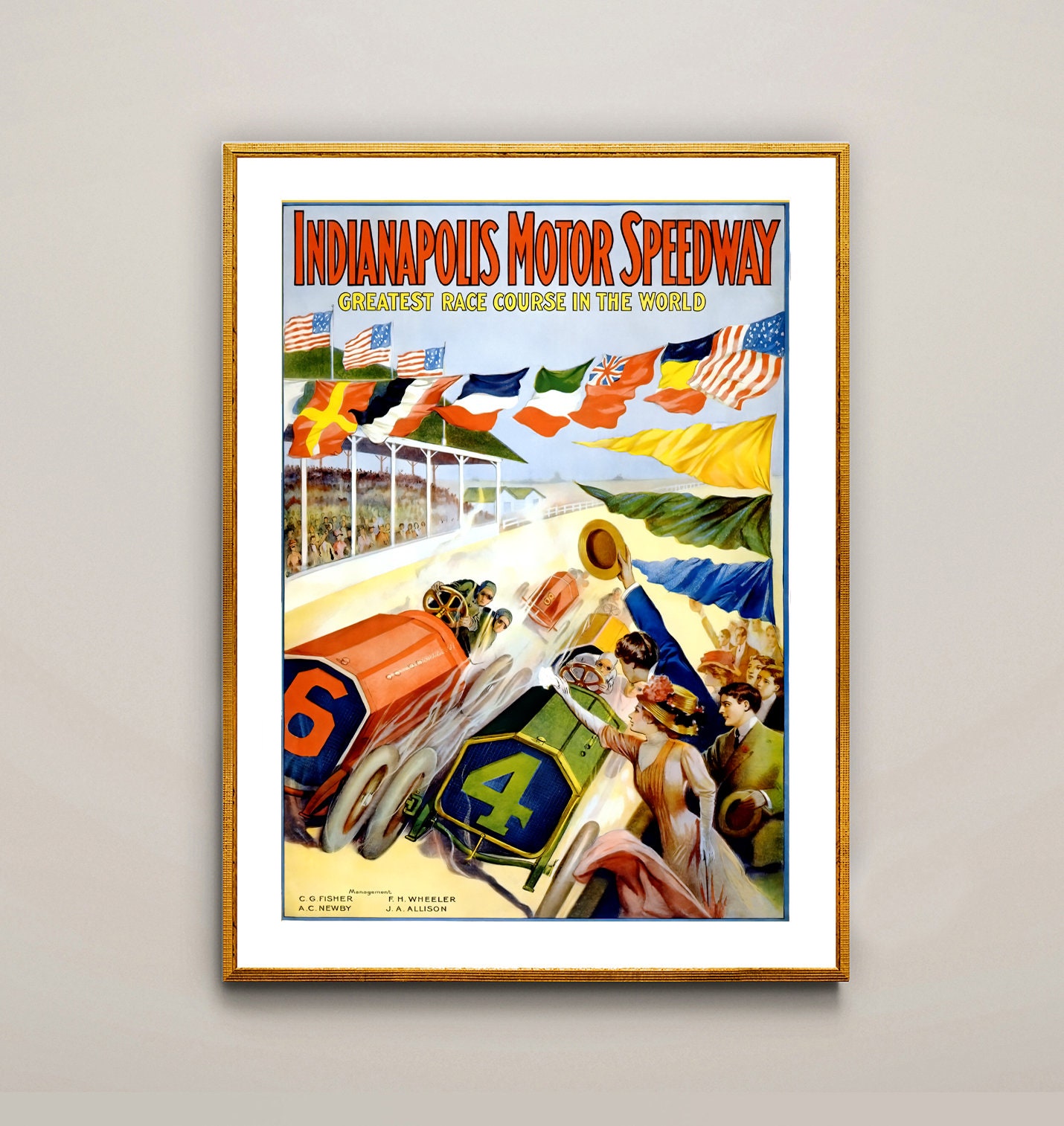 Vintage Indianapolis Motor Speedway 1909 Art Print: Retro Race Car Decor