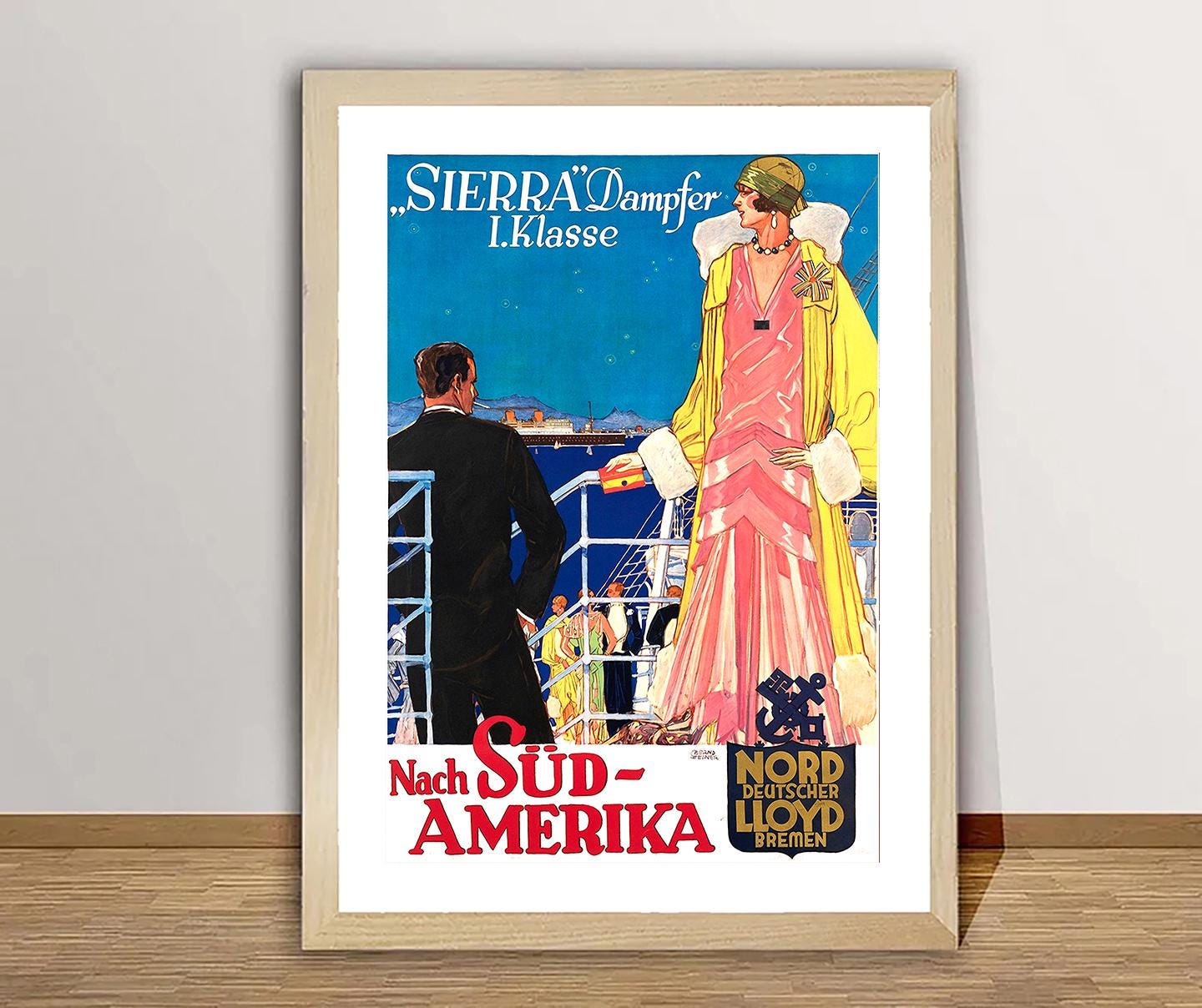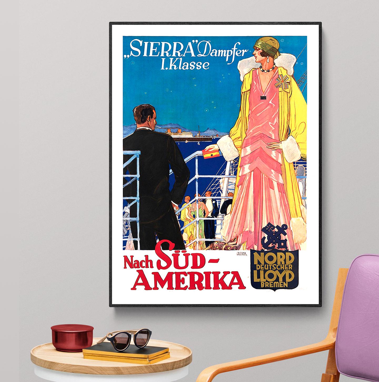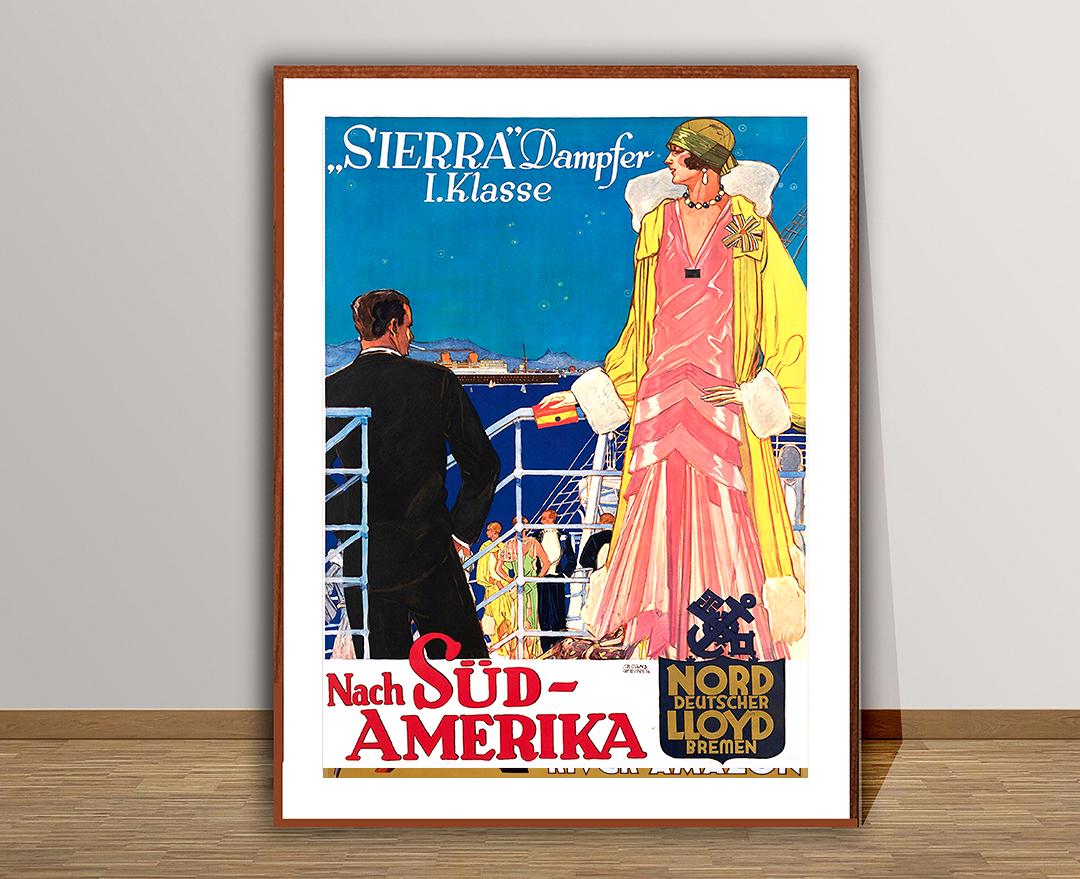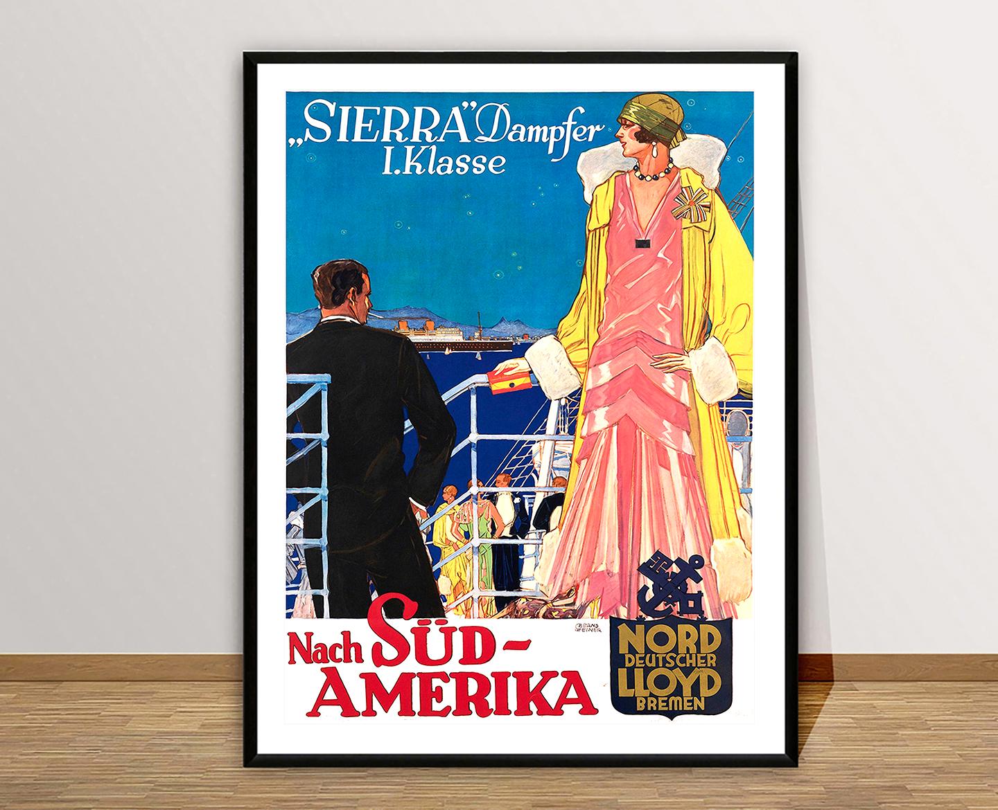 Sierra Dampfer I. Klasse Nach Süd-Amerika, Nord Deutscher Lloyd Bremen Vintage Travel Poster - Poster Paper or Canvas Giclee Print
