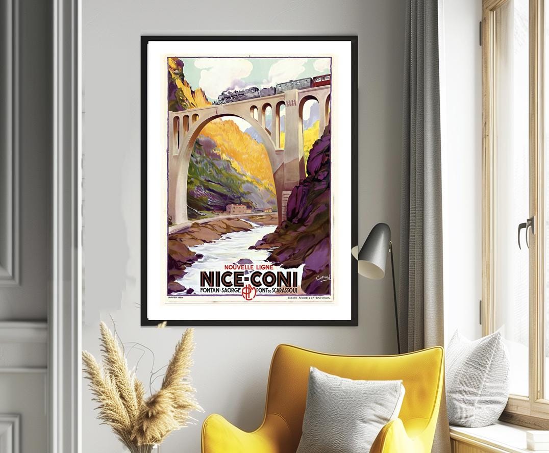 Nouvelle Ligne Nice-Coni Vintage Travel Poster - Poster Paper or Canvas Print / Gift Idea / Wall Decor