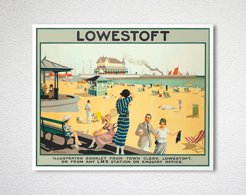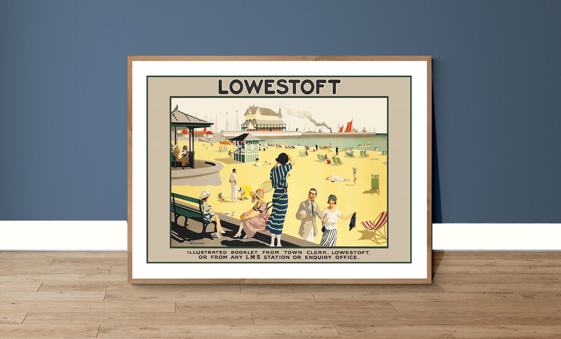 Lowestoft England Vintage Travel Poster: Beach Scene Print