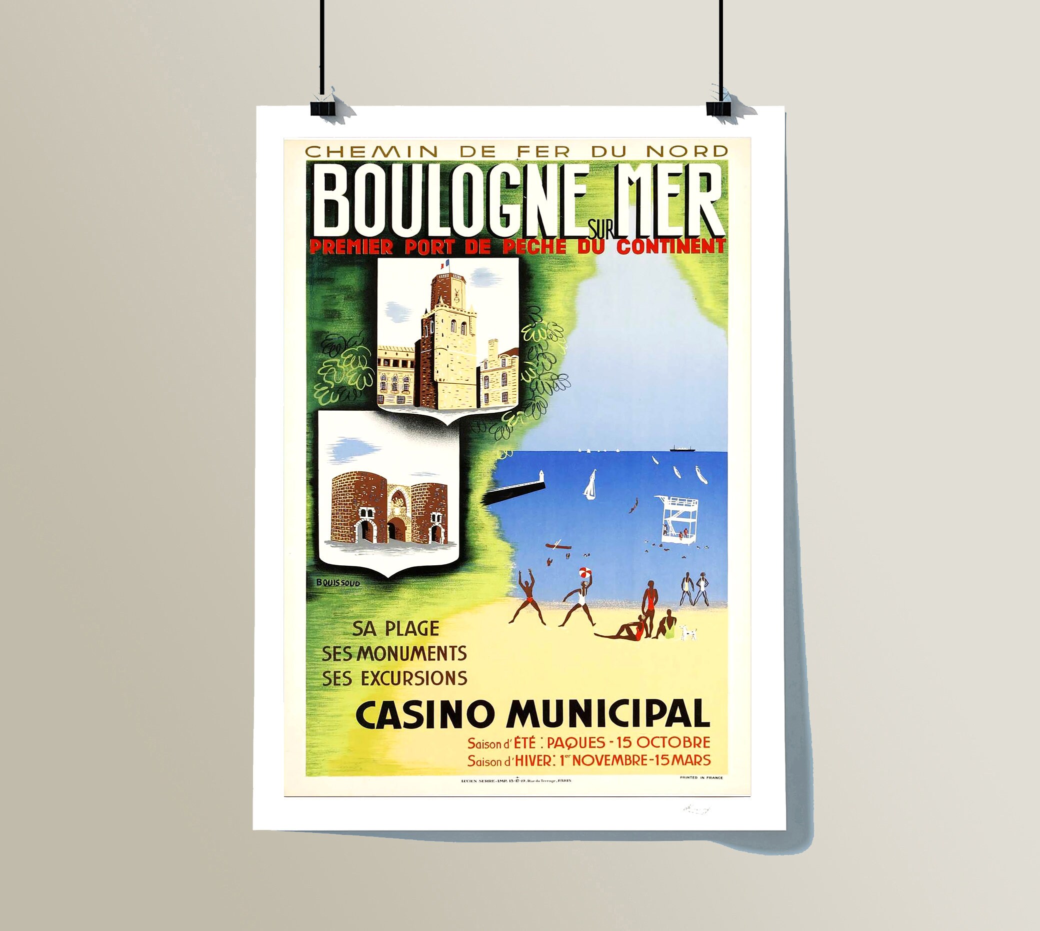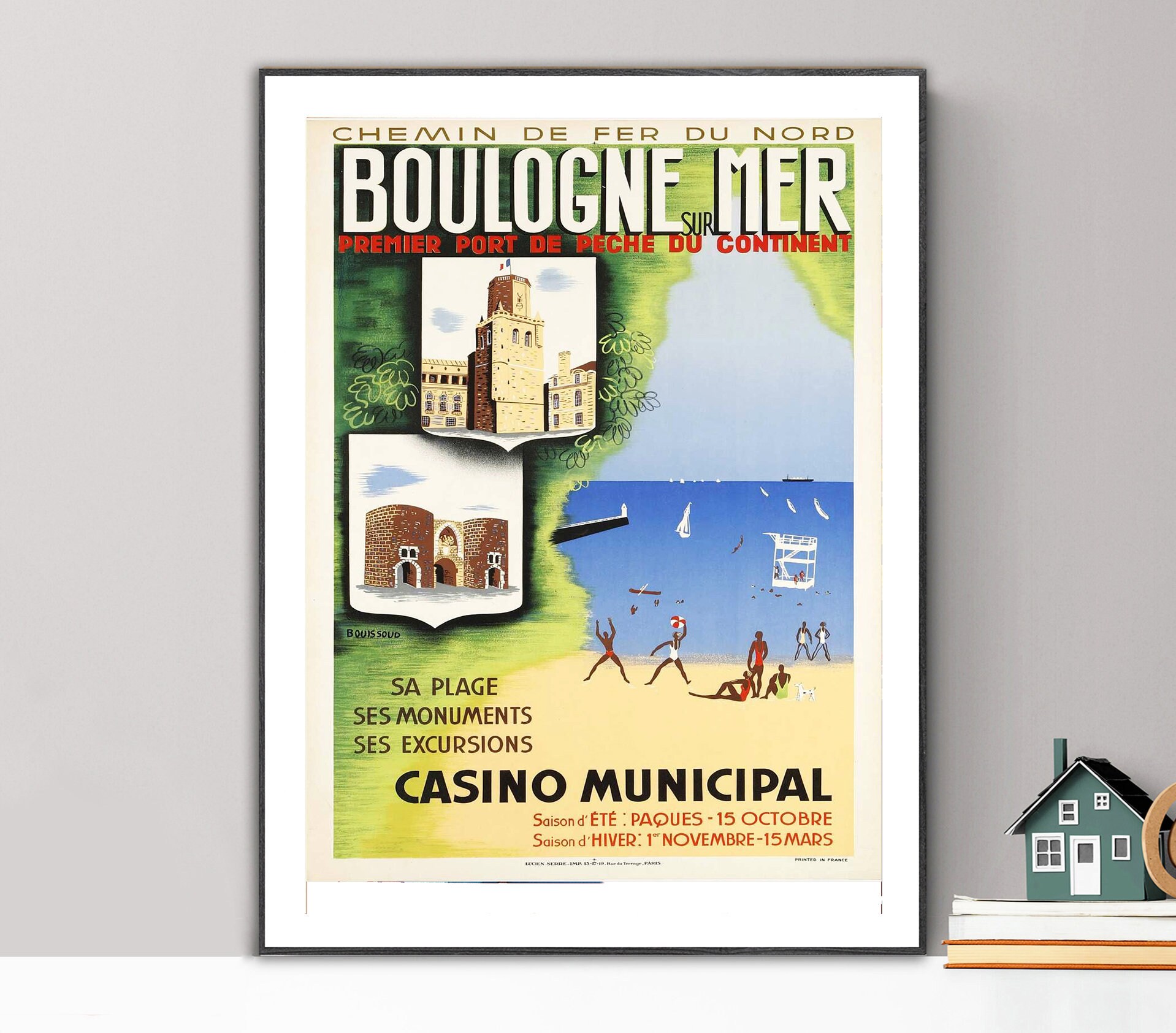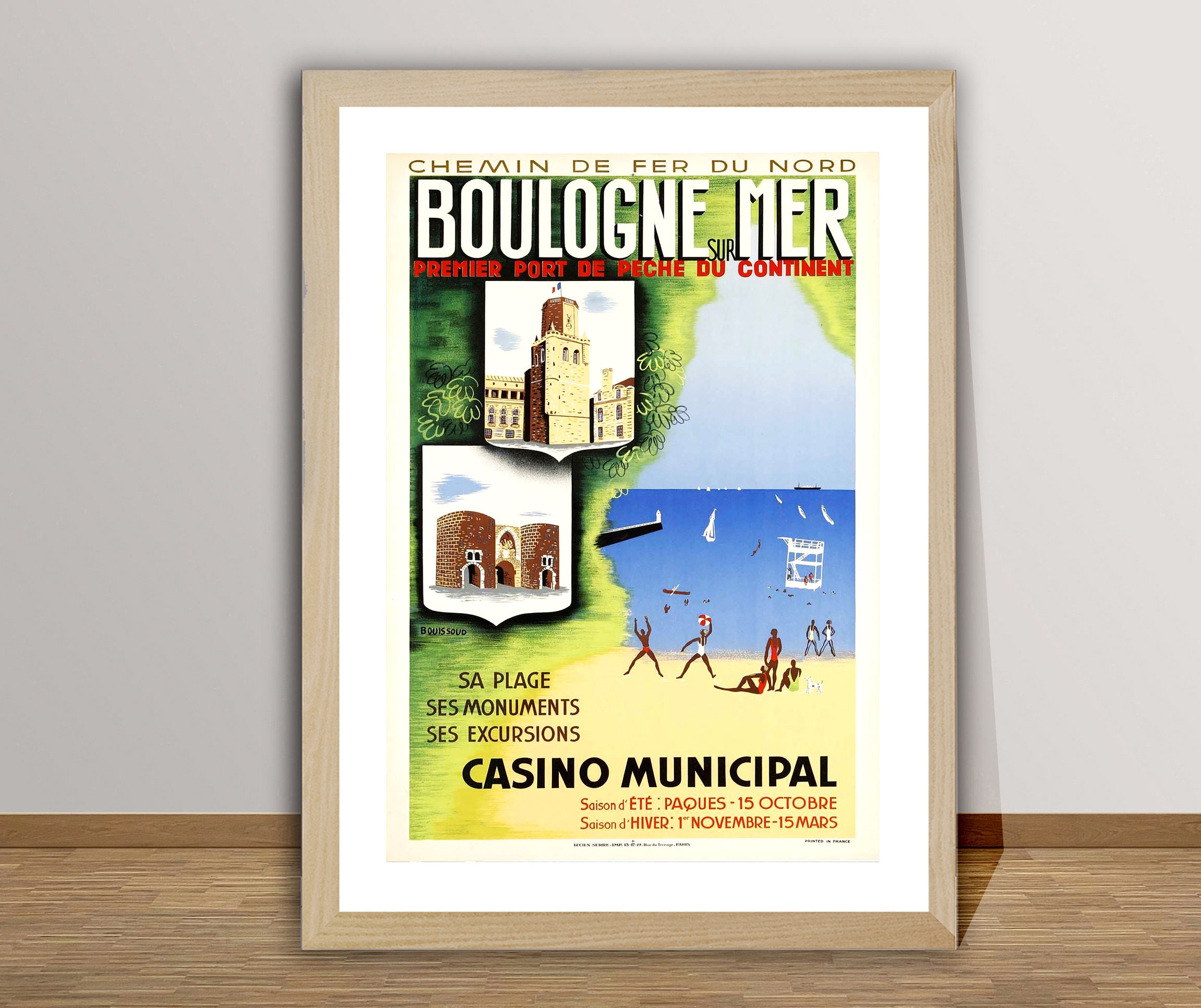 Boulogne Sur Mer Casino Municipal Vintage Travel Poster - Poster Paper or Canvas Print / Gift Idea