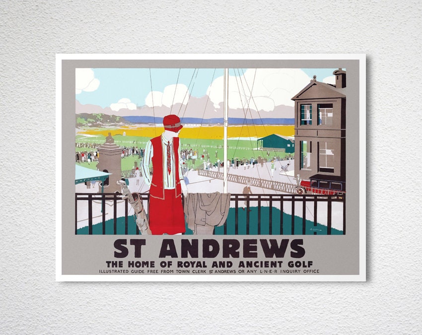 St Andrews, The Home of Royal and Ancient Golf, Scotland Vintage Travel Poster - Poster Paper or Canvas Print / Gift Idea