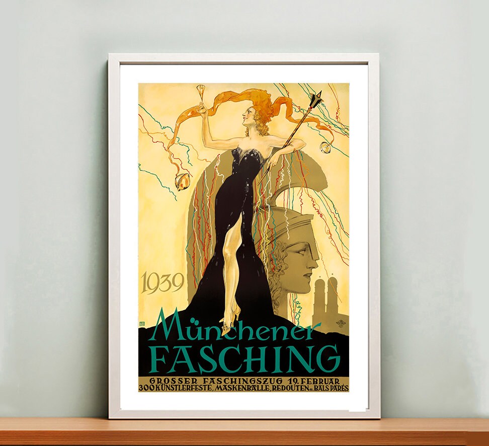 Münchener Fasching, Germany Vintage Travel Poster - Poster Print or Canvas Print / Gift Idea / Wall Decor