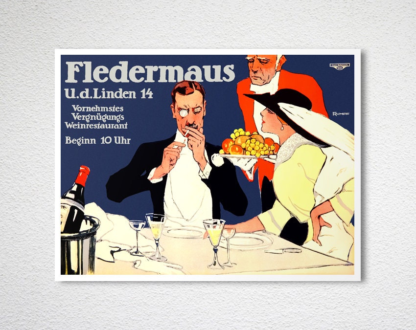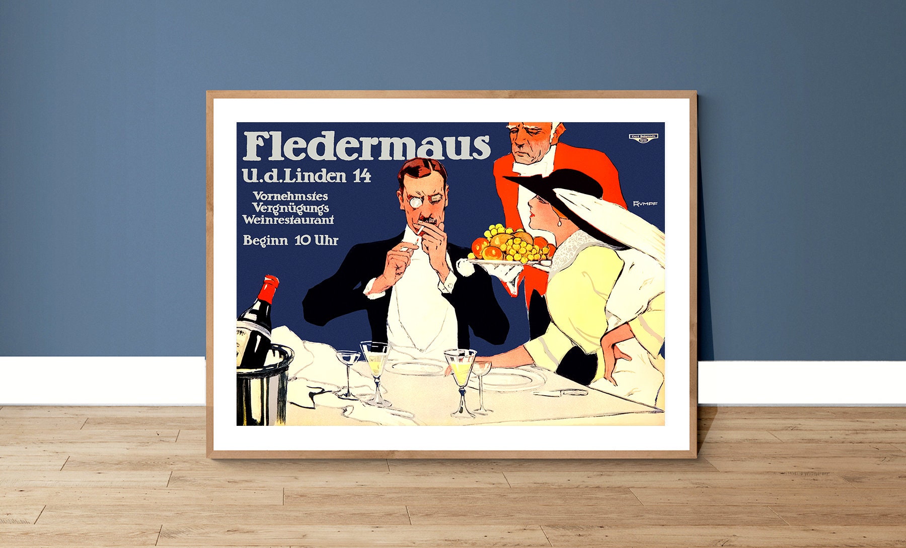 Vintage Fldermaus, Linden Wein Restaurant Advertisement Art Print - Reproduction of a Vintage Artwork, Decorative Purposes Wall Decor - Poster Paper or Canvas Print