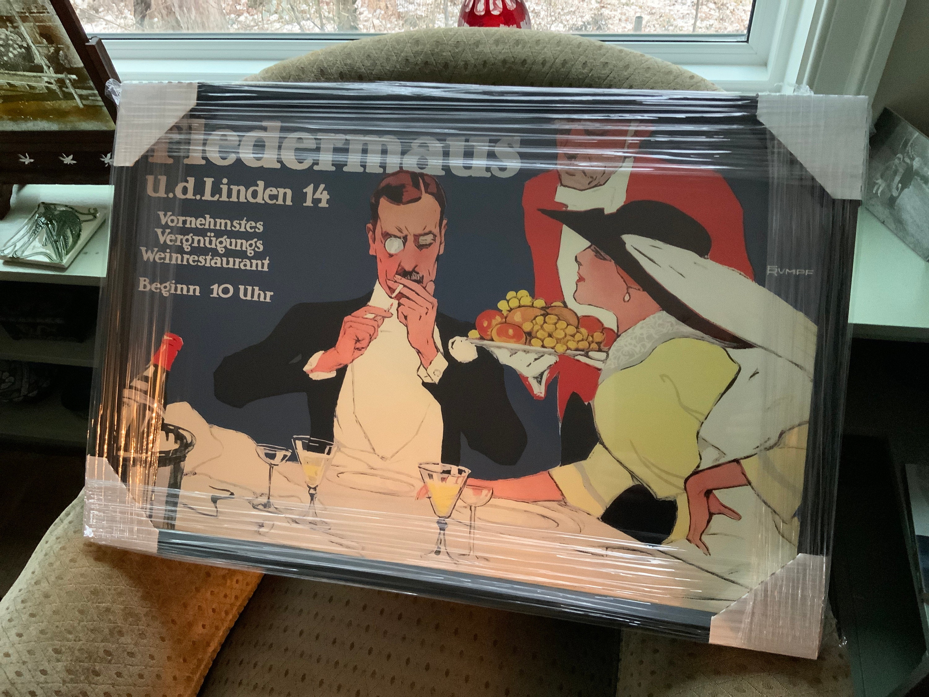 Vintage Fldermaus, Linden Wein Restaurant Advertisement Art Print - Reproduction of a Vintage Artwork, Decorative Purposes Wall Decor