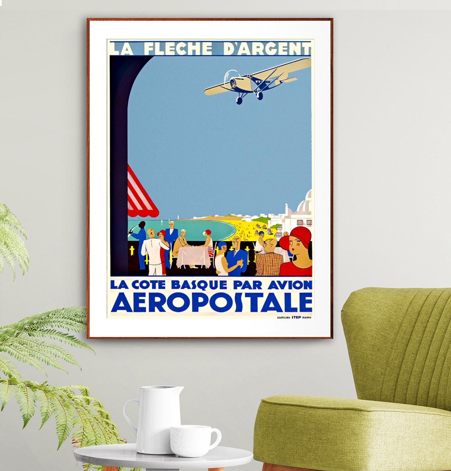 La Cote Basque Par Avion Aeropostale, France Vintage Travel Poster - Poster Paper or Canvas Print / Gift Idea