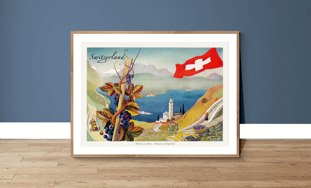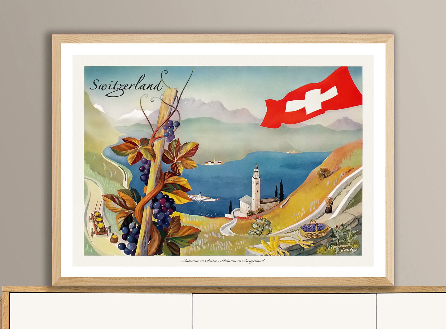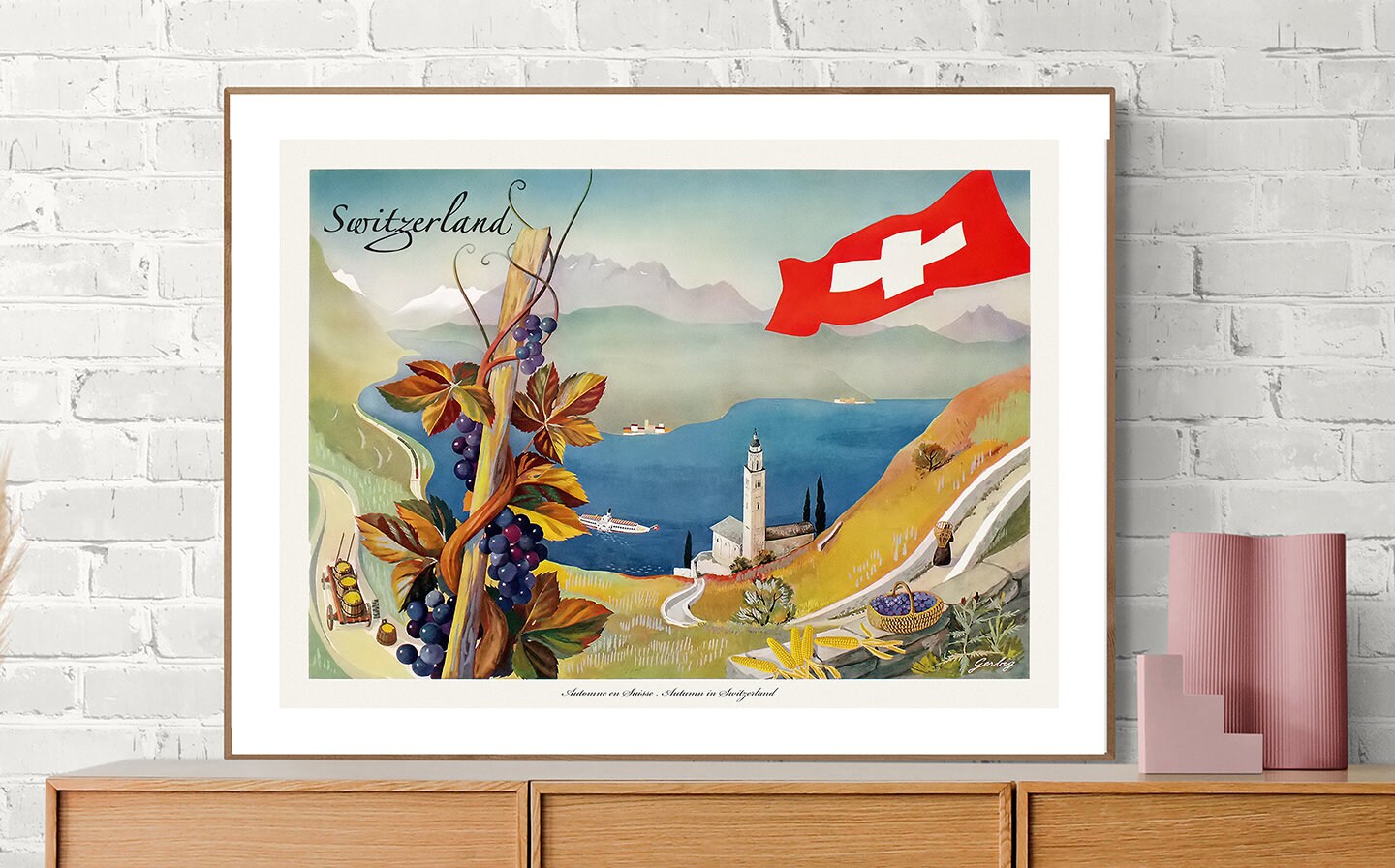 Switzerland, Autumn in Suisse Vintage Travel Poster - Poster Paper or Canvas Print