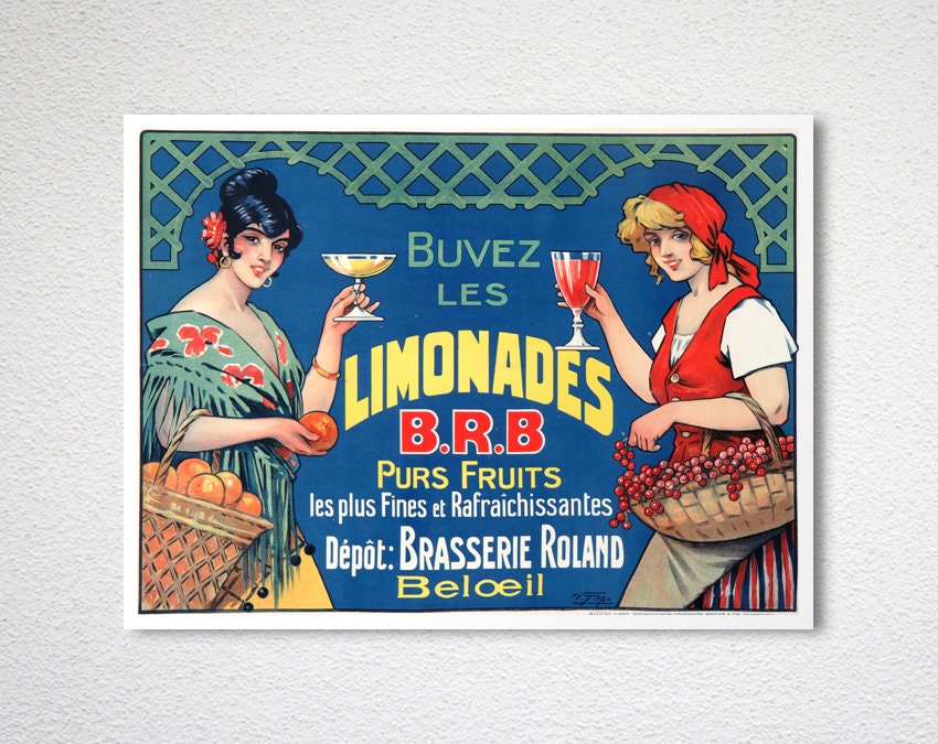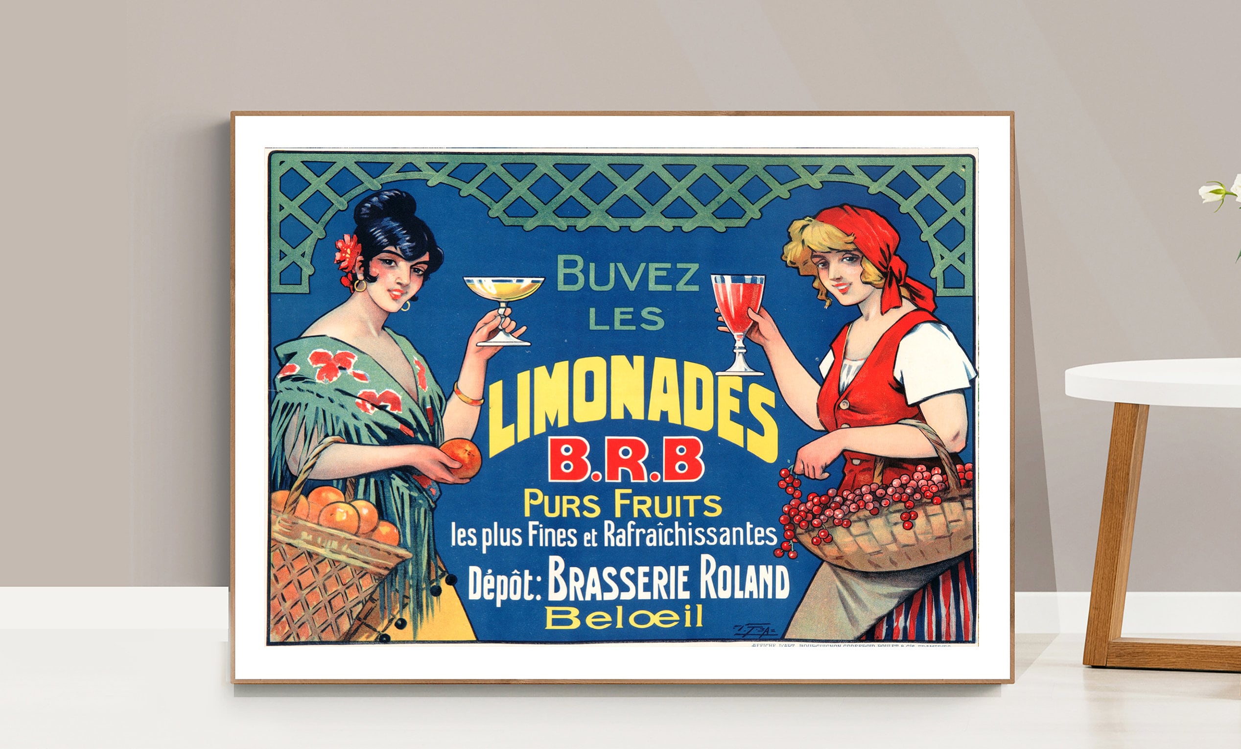 Buvez Les Limonades Vintage Food&Drink Poster - Poster Print or Canvas Print / Gift Idea / Wall Decor