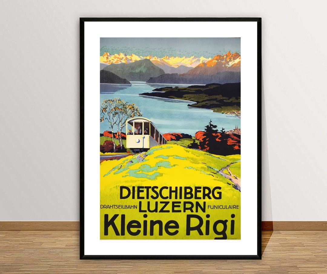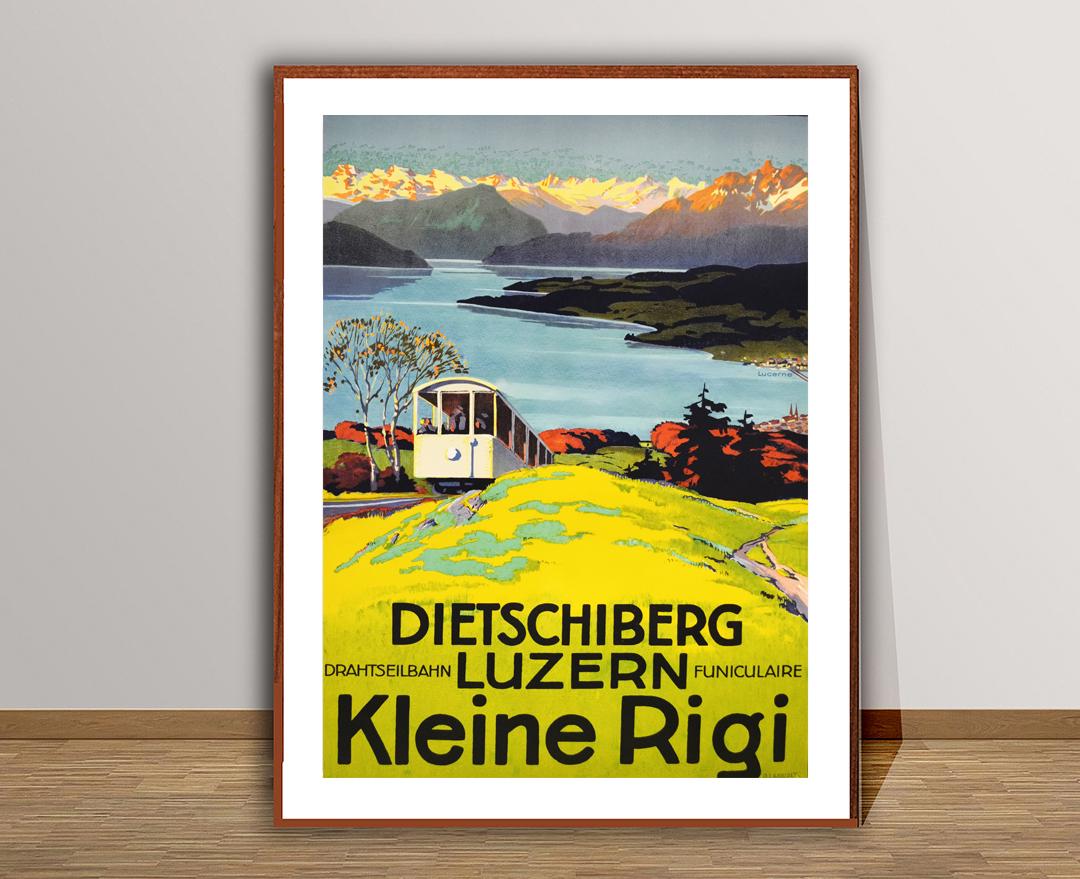 Dietschiberg Drahtseilbahn Luzern Funiculaire Kleine Rigi, Suisse Vintage Travel Poster - Poster Paper or Canvas Print