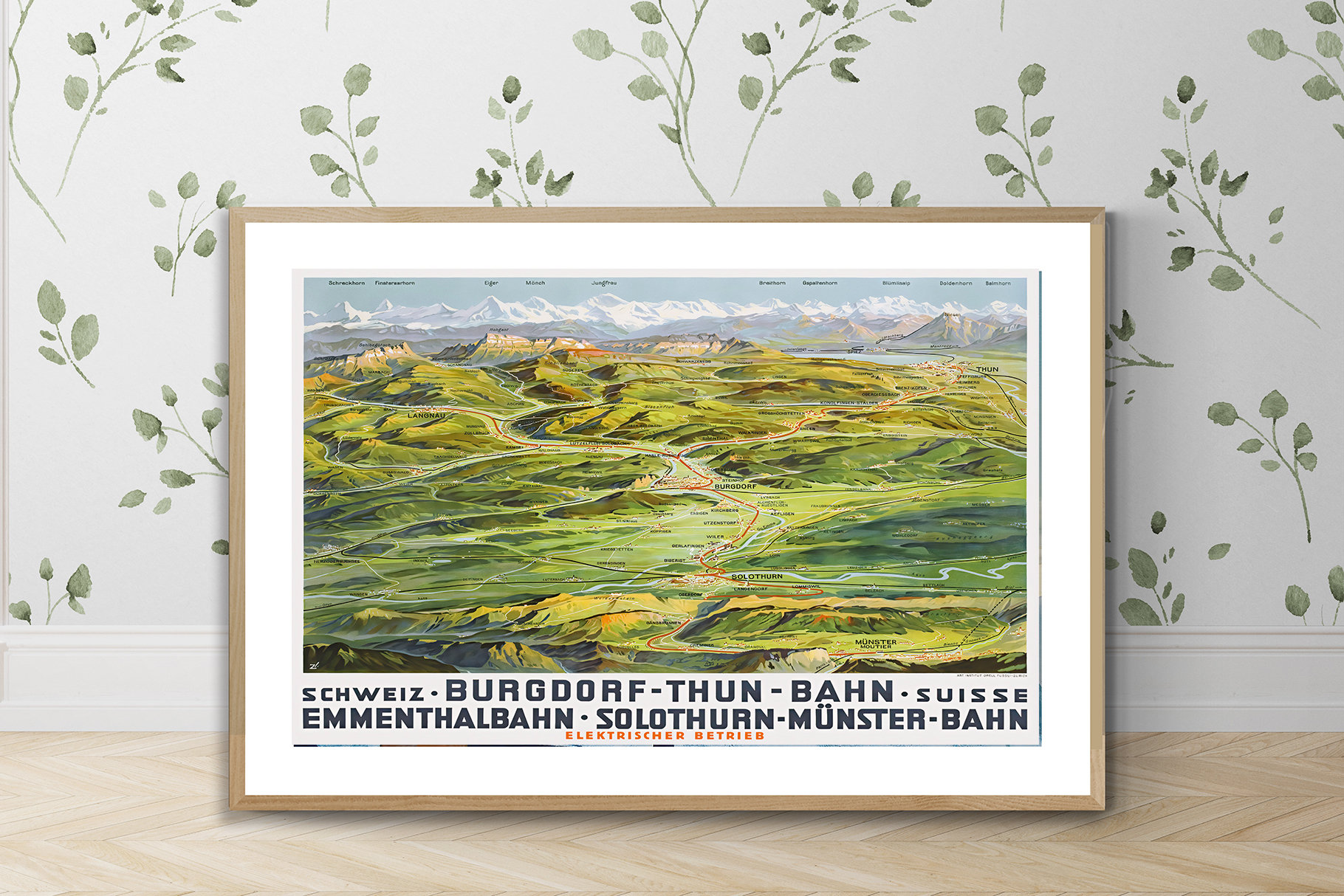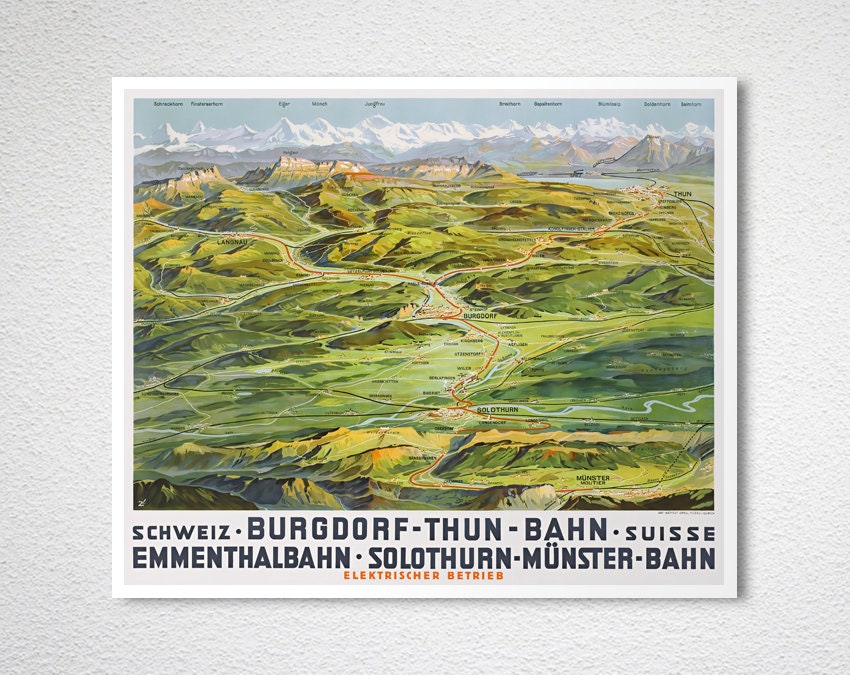 Schweiz Burgdorf, Thun, Bahn Vintage Travel Poster - Poster Paper or Canvas Print / Wall Decor