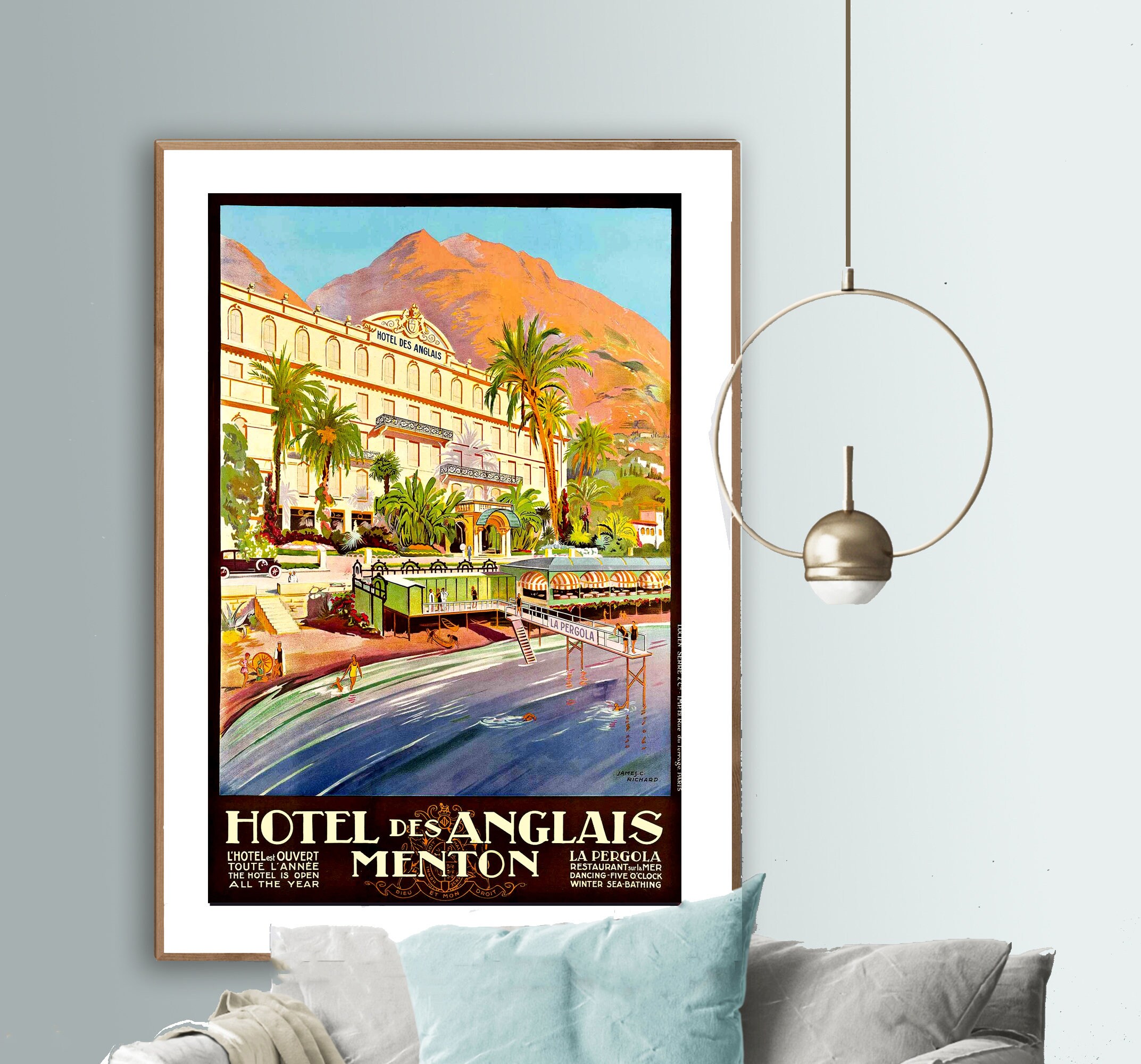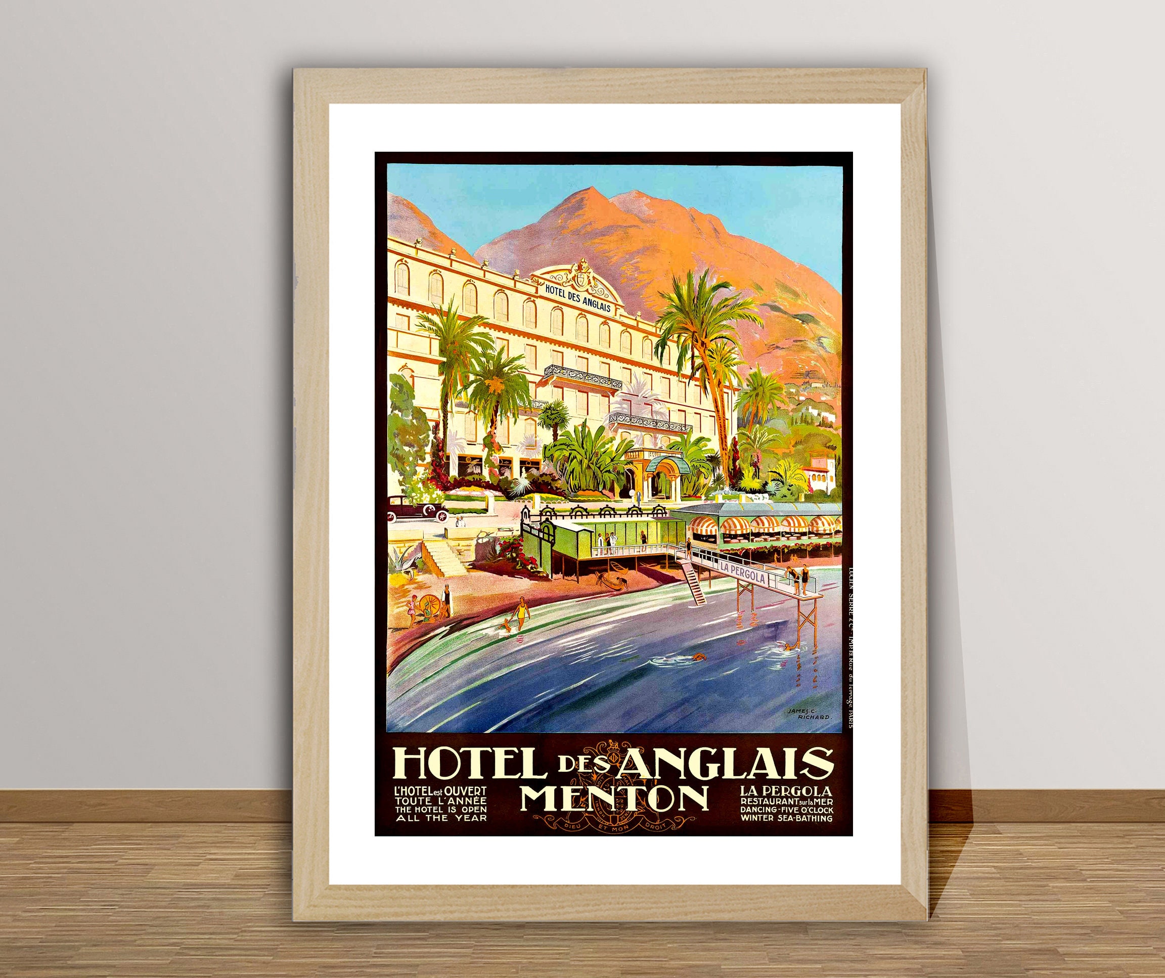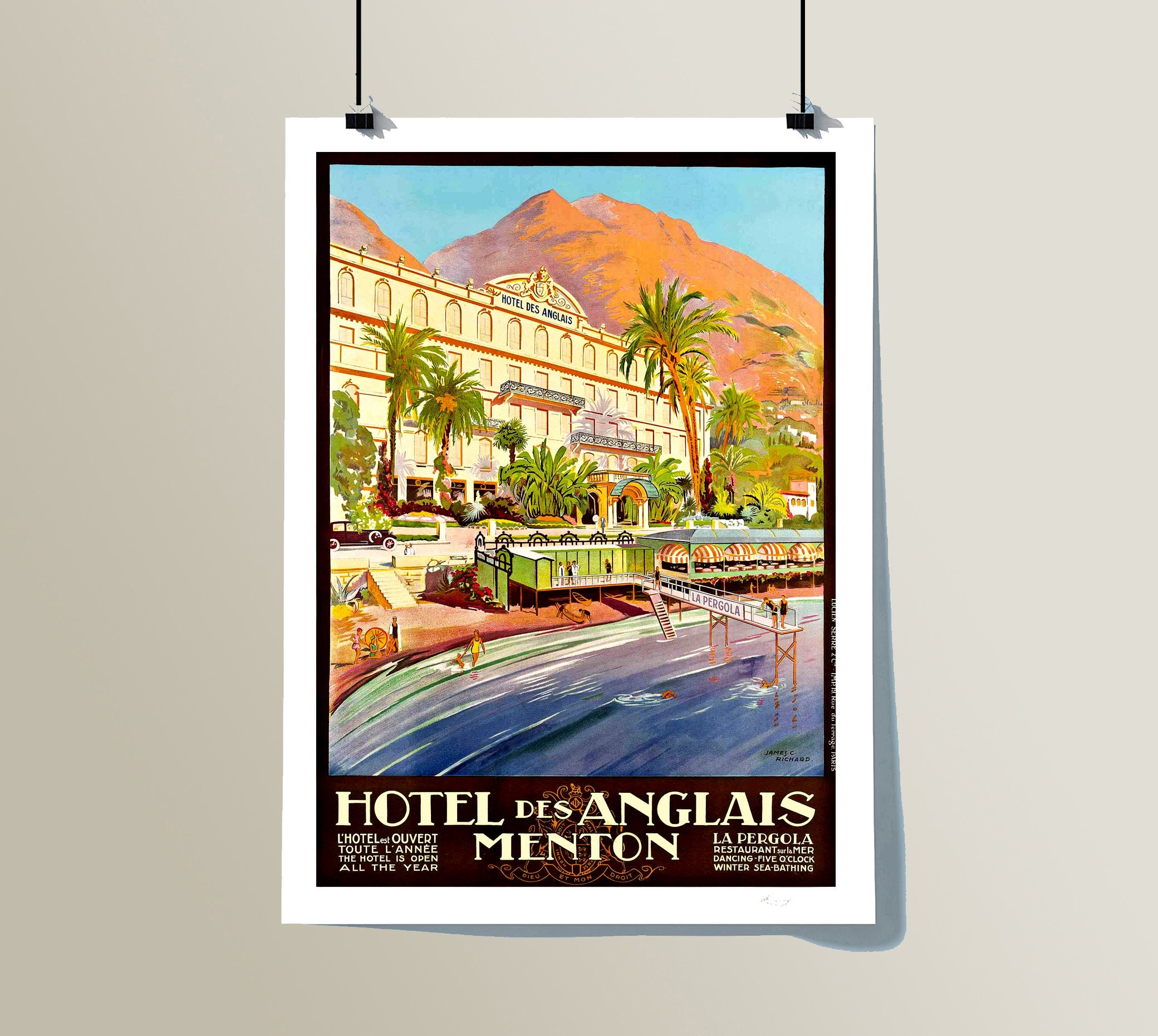 Hotel des Anglais Menton, France Vintage Travel Poster - Poster Paper or Canvas Print / Gift Idea / Wall Decor