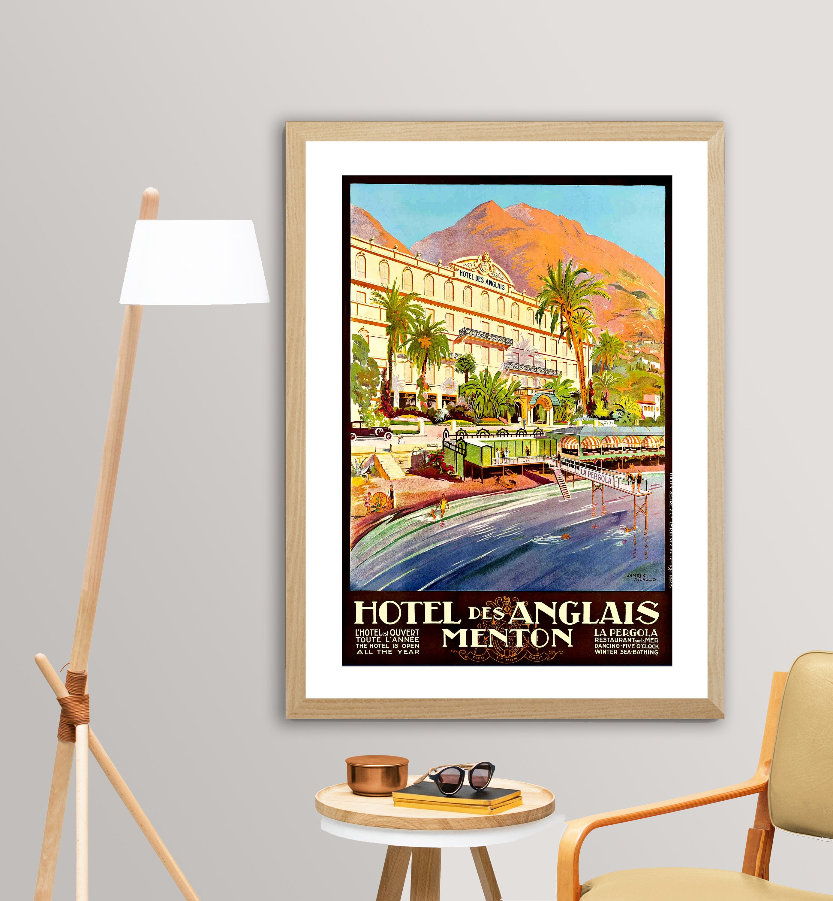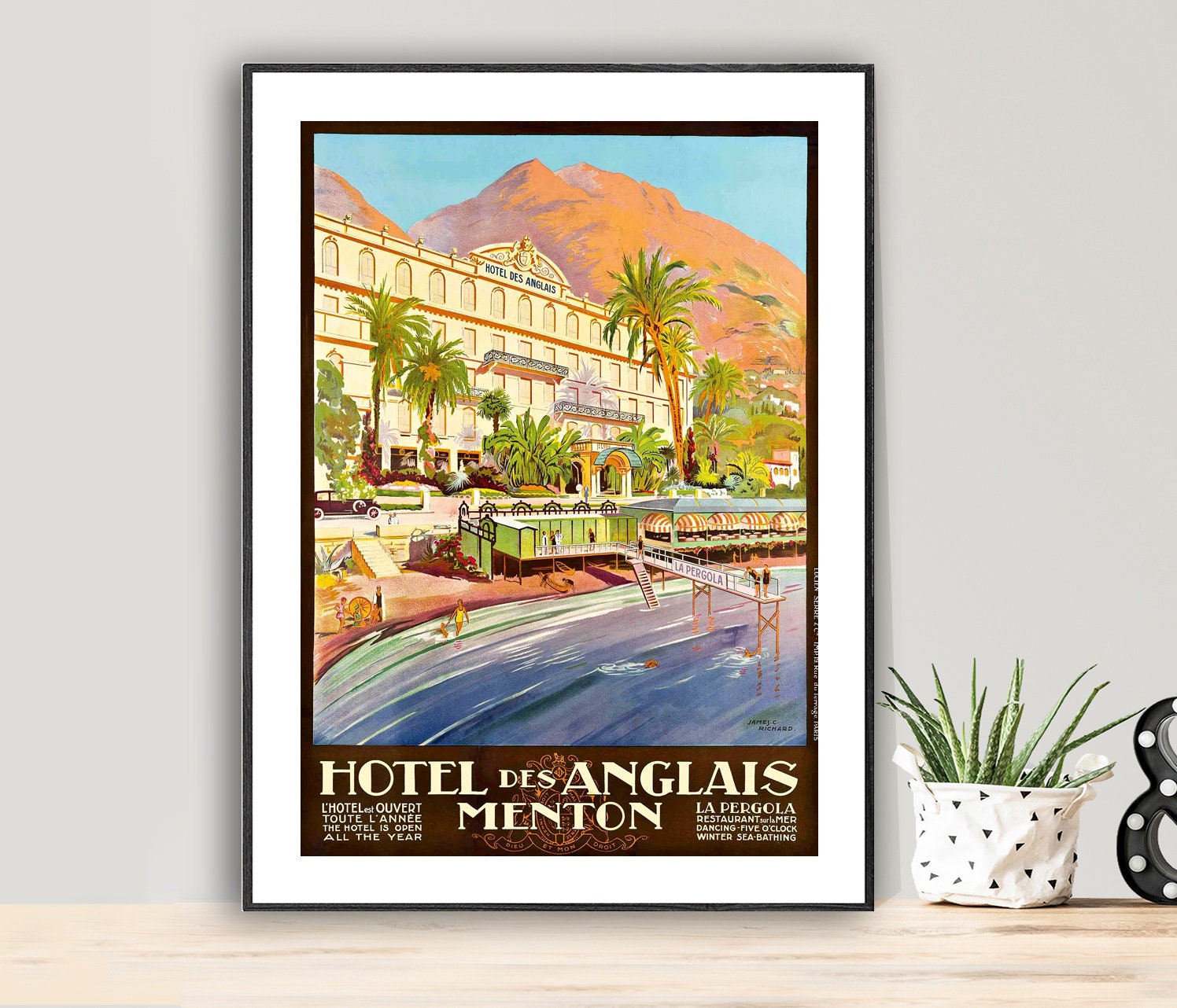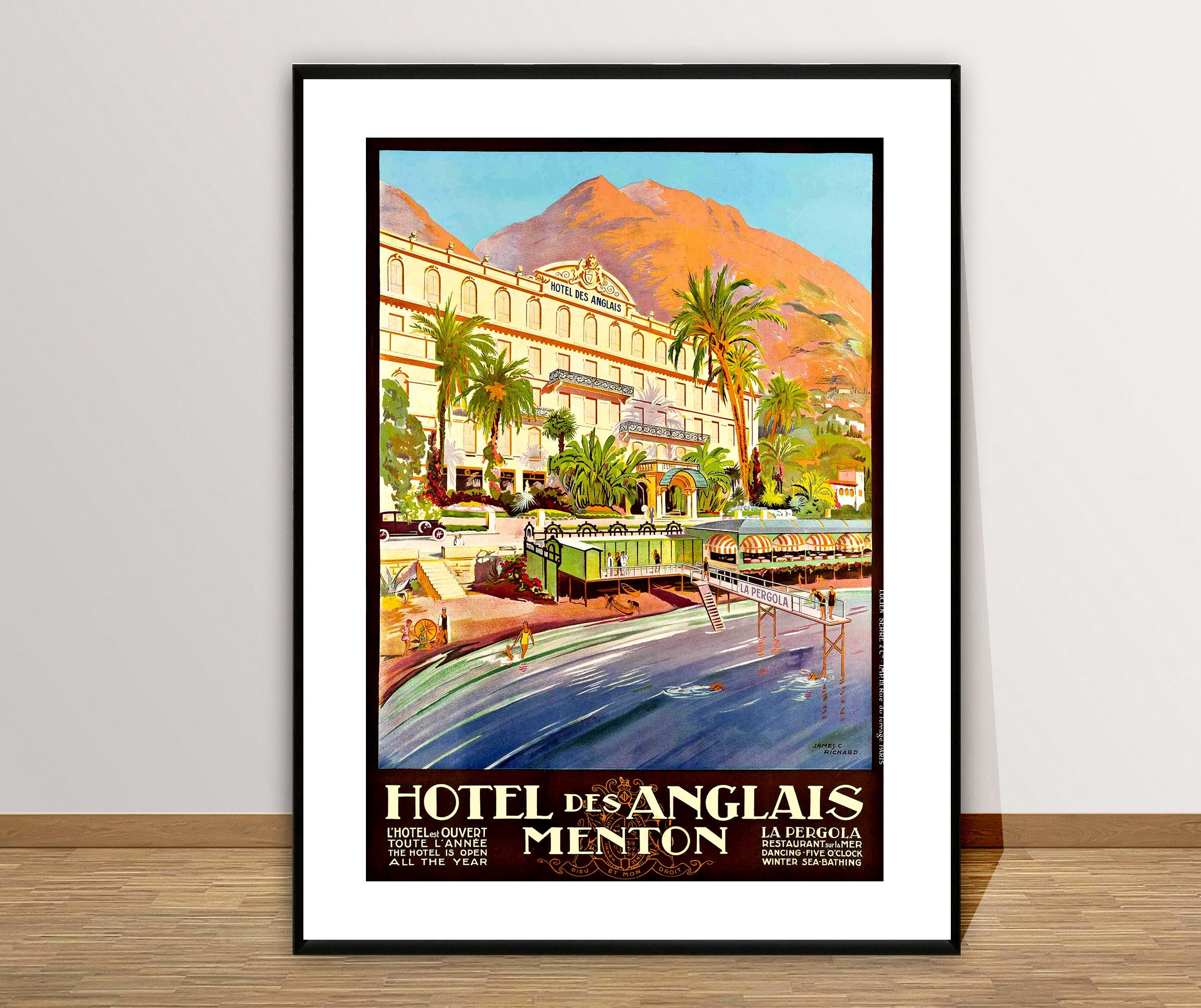 Hotel des Anglais Menton, France Vintage Travel Poster - Poster Paper or Canvas Print / Gift Idea / Wall Decor
