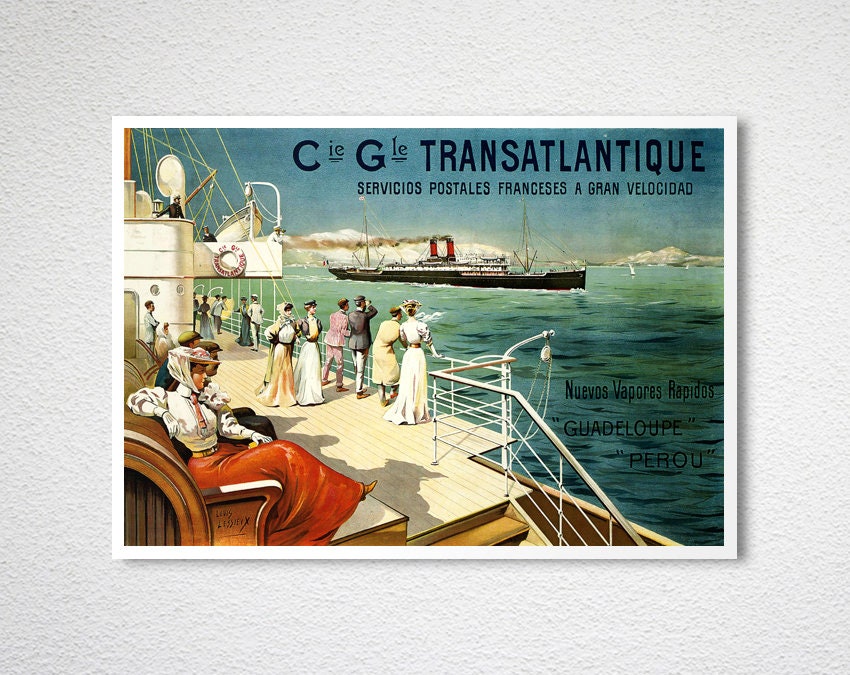 Thanks for visiting our shop!Cie Gle Transatlantique Guadeloupe, Perou Vintage Travel Poster - Poster Paper or Canvas Print / Gift Idea / Christmas Gift