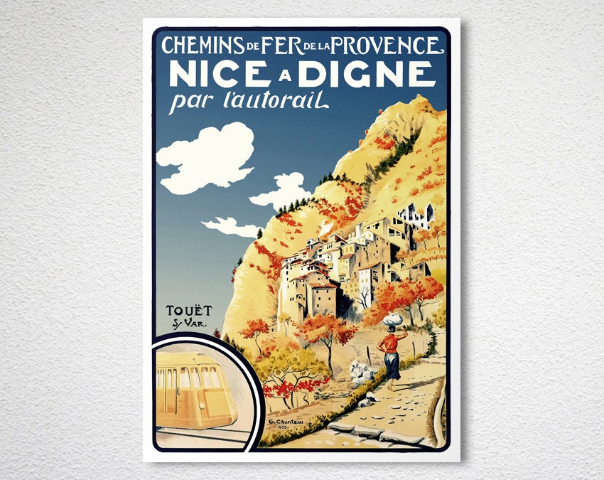 Nice a Digne par L'autorail Vintage Travel Posters - Poster Paper or Canvas Prints / Gift Idea / Wall Art