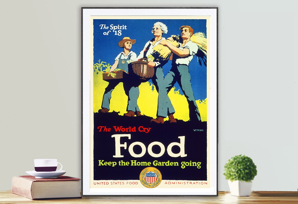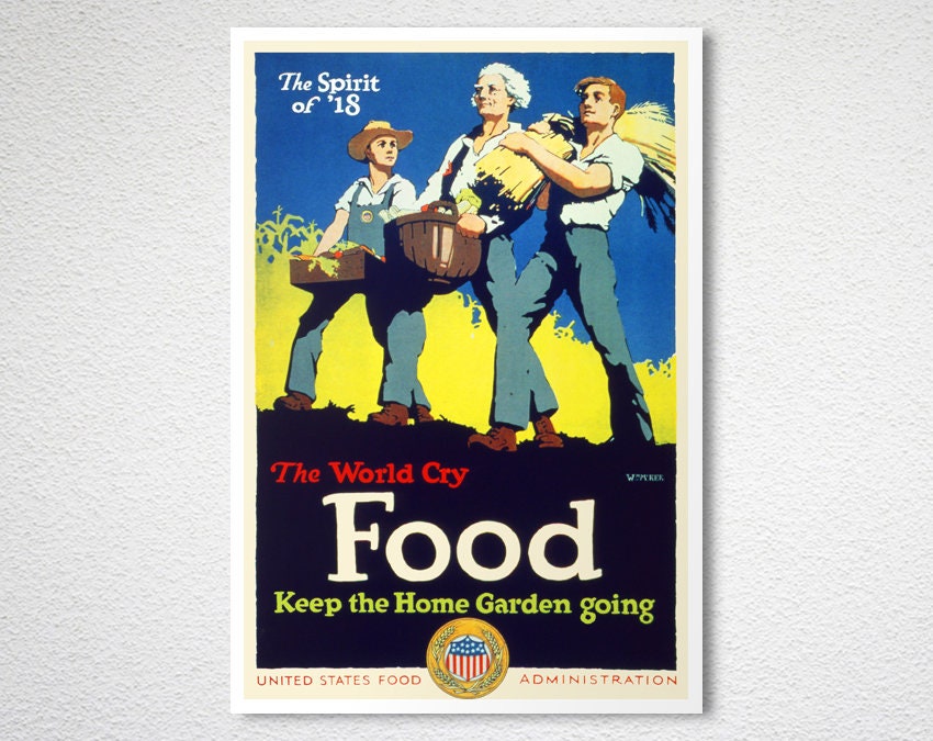 The World Cry Food Keep the Home Garden Going Vintage Motivational Poster - Poster Print or Canvas Print / Gift Idea / Wall Decor