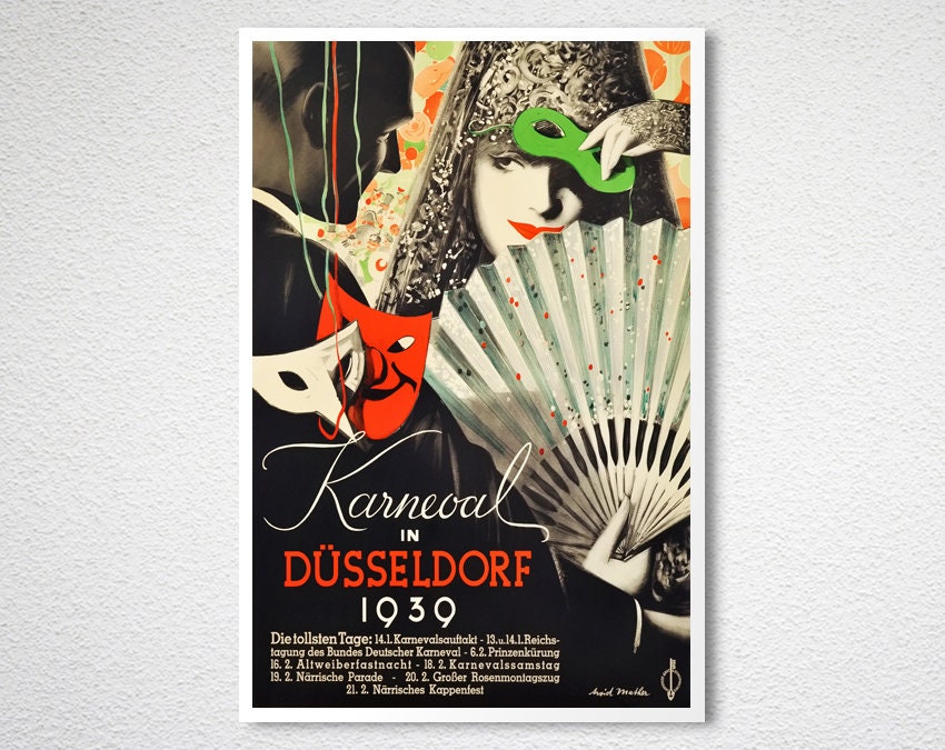 Karneval in Dusseldorf, Germany 1939 Vintage Travel Poster - Poster Paper or Canvas Print / Gift Idea / Wall Decor