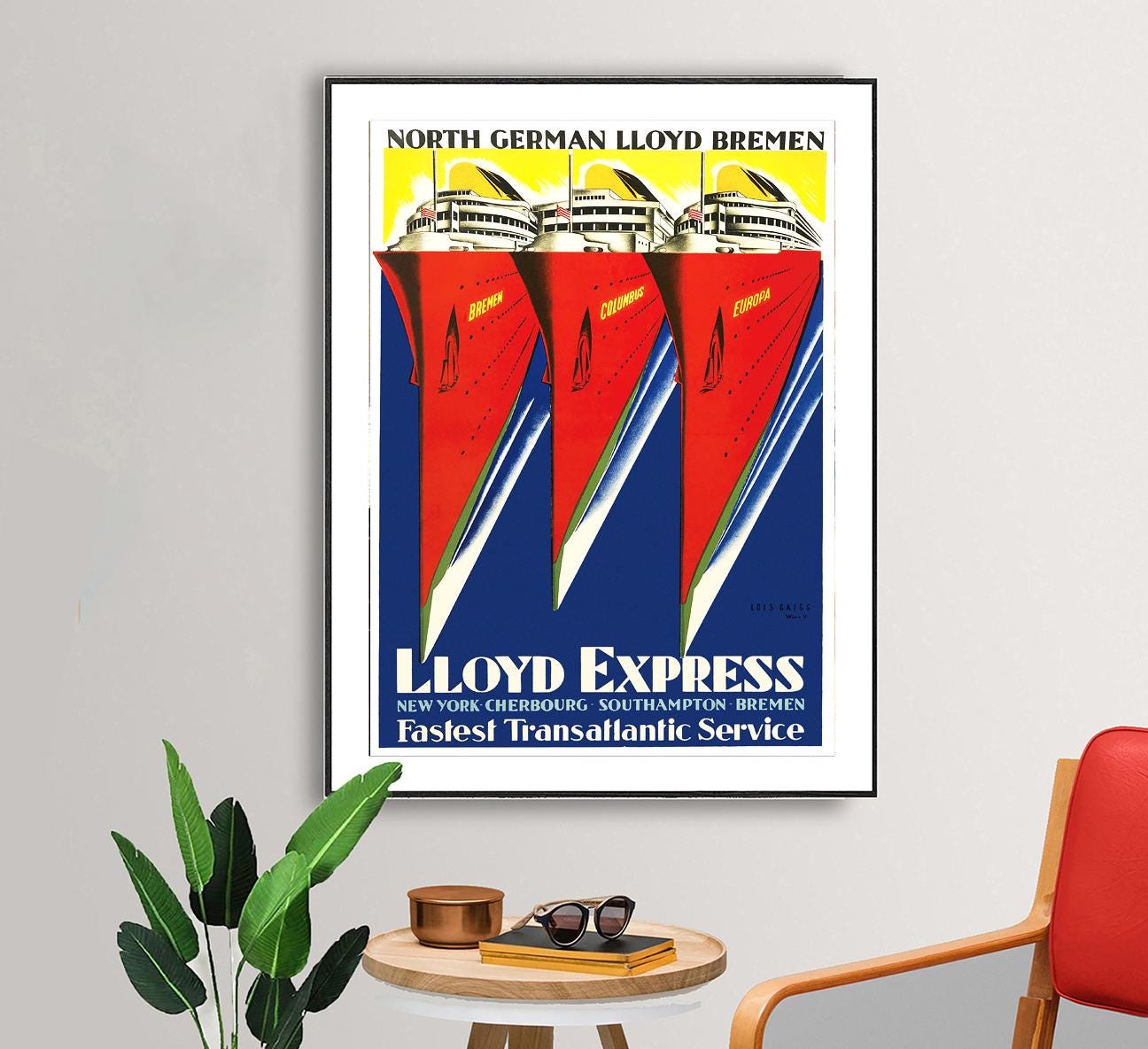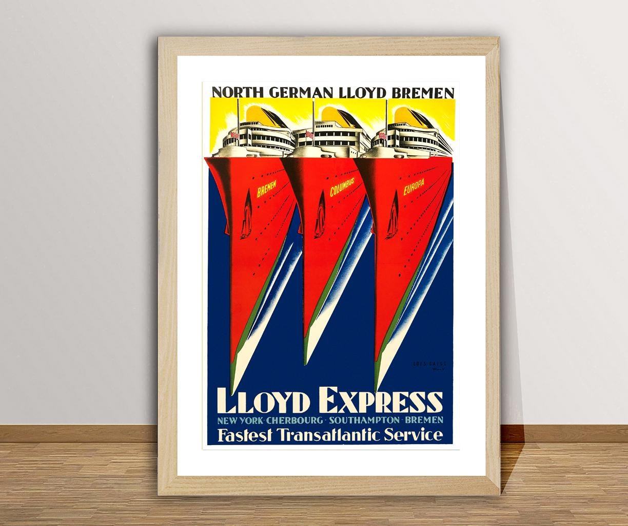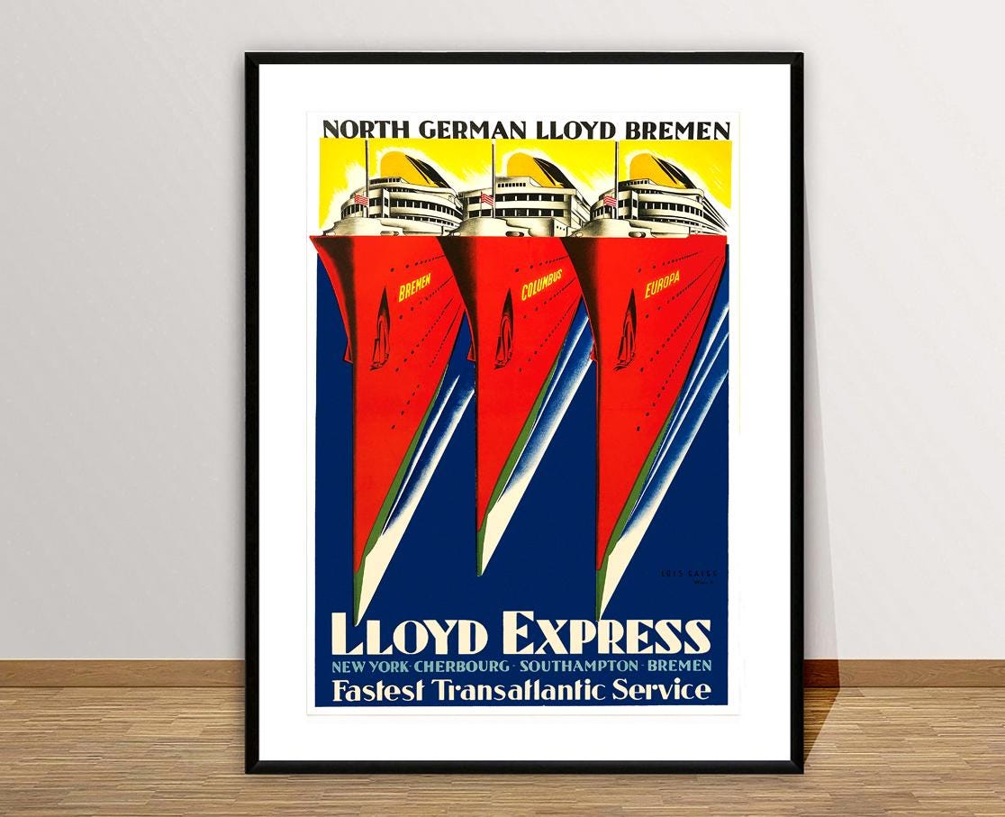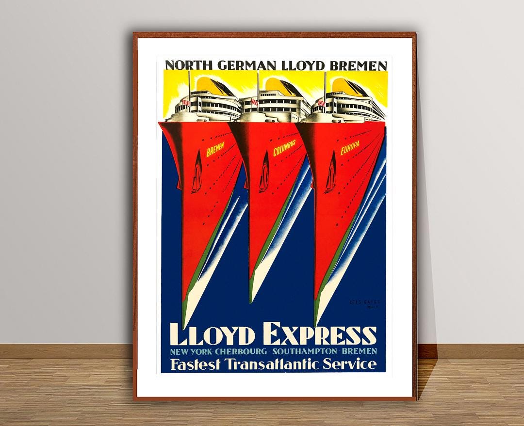 North German Lloyd Bremen Express Vintage Travel Poster Art Print